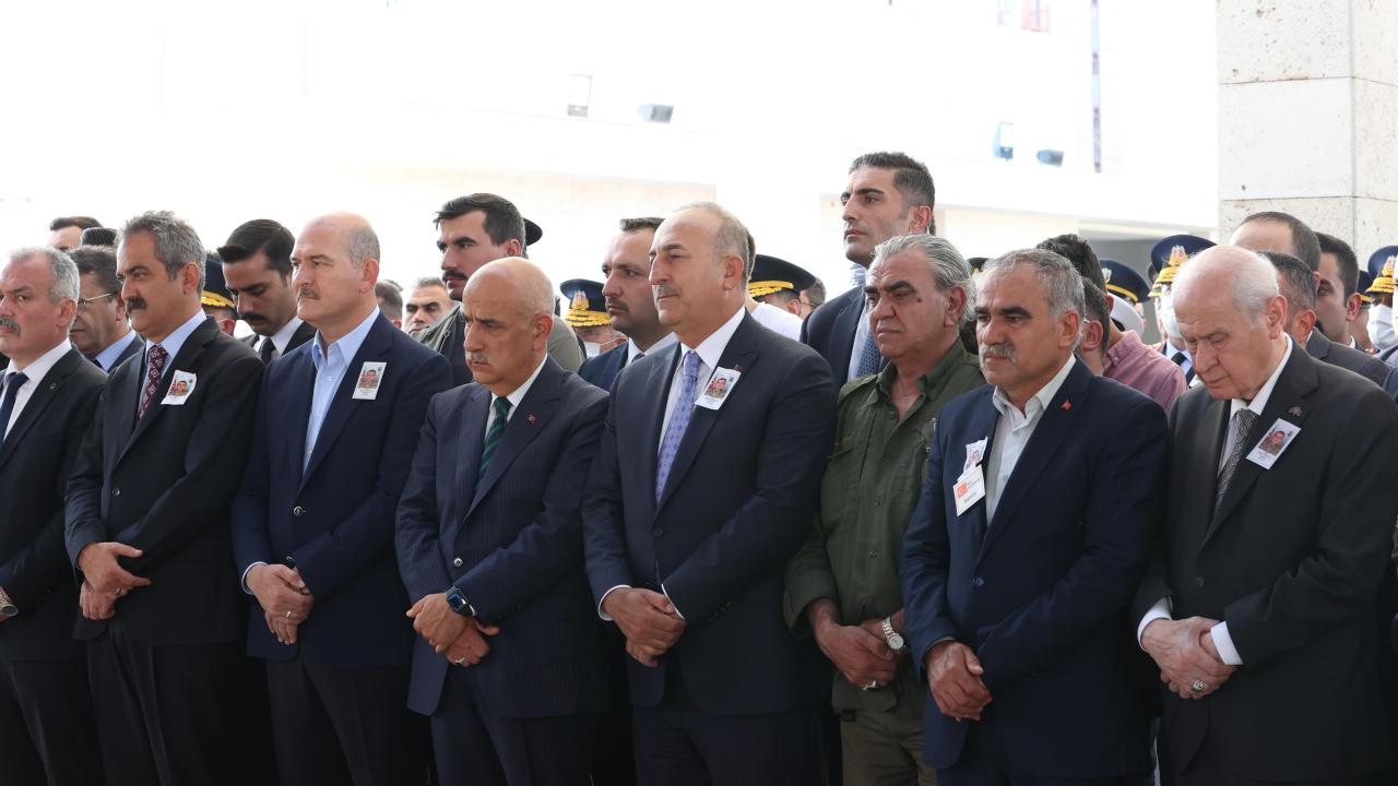 Törene Dışişleri Bakanı Mevlüt Çavuşoğlu, İçişleri Bakanı Süleyman Soylu, Milli Eğitim Bakanı Mahmut Özer, Tarım ve Orman Bakanı Vahit Kirişci, MHP Genel Başkanı Devlet Bahçeli, AK Parti Genel Sekreteri Fatih Şahin, Genelkurmay Başkanı Orgeneral Yaşar Güler, kuvvet komutanları, Emniyet Genel Müdürü Mehmet Aktaş, Ankara Valisi Vasip Şahin ve İl Emniyet Müdürü Servet Yılmaz da katıldı.