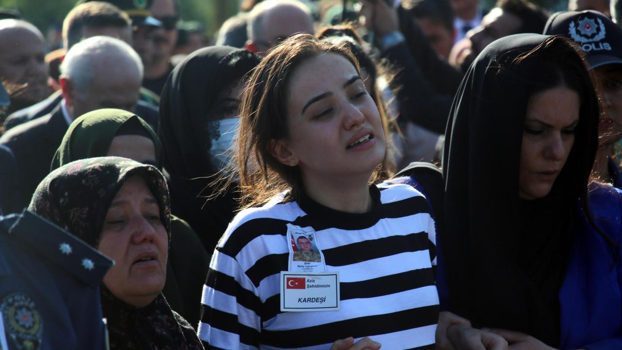 Şehidin annesi Fatma, babası Şahin ve eşi Duygu Yoğurtcu ile yakınları, taziyeleri kabul etti.