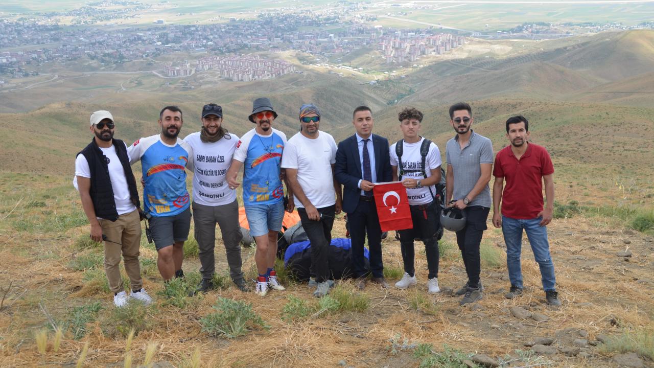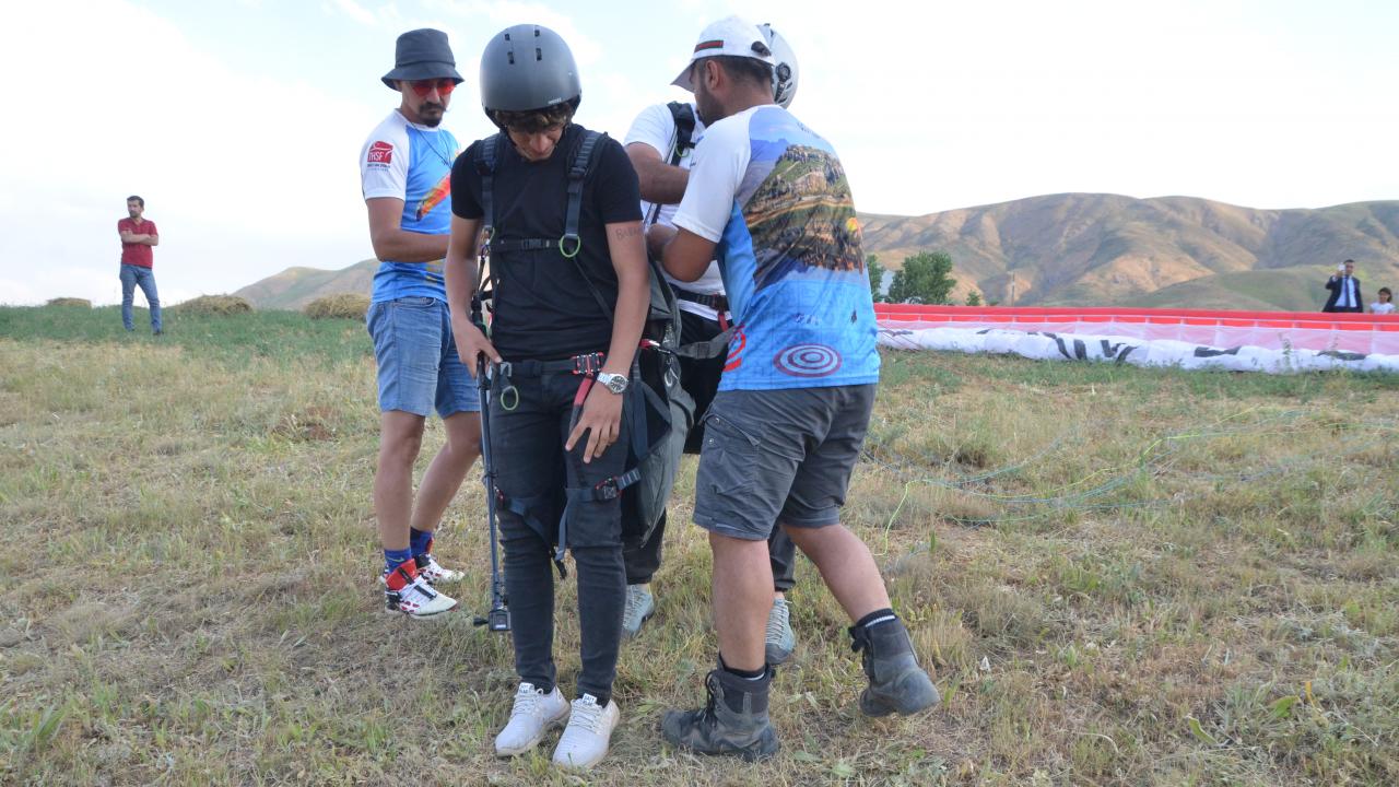 Bunun üzerine Türk Hava Kurumu Havacılık Eğitim Merkezi`nde görevli yamaç paraşütü eğitmeni Hasan Tur, Van Sportif Havacılık Kulübünden Cevat Sarı ve Kenan Çiftçi ile Hakkari`nin Şemdinli ilçesinden Yunus Saraç`tan oluşan dört kişilik ekip, Genç`in isteğini gerçekleştirmek için 2 bin 400 rakımlı tepeye çıktı.