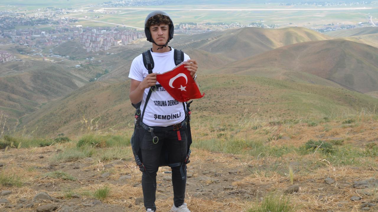 Farklı illerden Hakkari'nin Yüksekova ilçesine gelen 4 yamaç paraşütü eğitmeni, şehit güvenlik korucusu Mehmet Genç'in oğlu Yunus Genç'in uçma hayalini gerçekleştirdi.