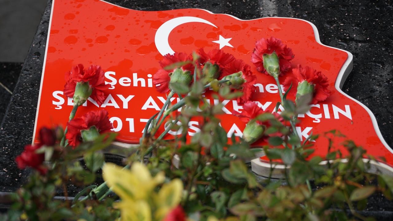 Törende daha sonra öğrenciler şehit öğretmen Aybüke Yalçın`ın kabrine karanfil bıraktı.
