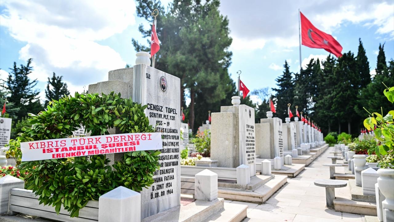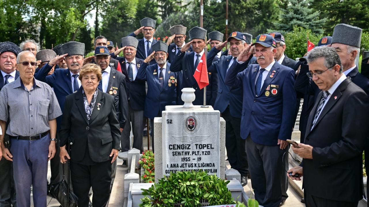 Edirnekapı Hava Şehitliği`ndeki Şehit Pilot Yüzbaşı Cengiz Topel`in kabri başında düzenlenen törene, KKTC İstanbul Başkonsolosu Fatma Demirel, Kıbrıs Türk Kültürü Derneği İstanbul Başkanı Zehra Bilge Ayar ve Kıbrıs gazileri katıldı.