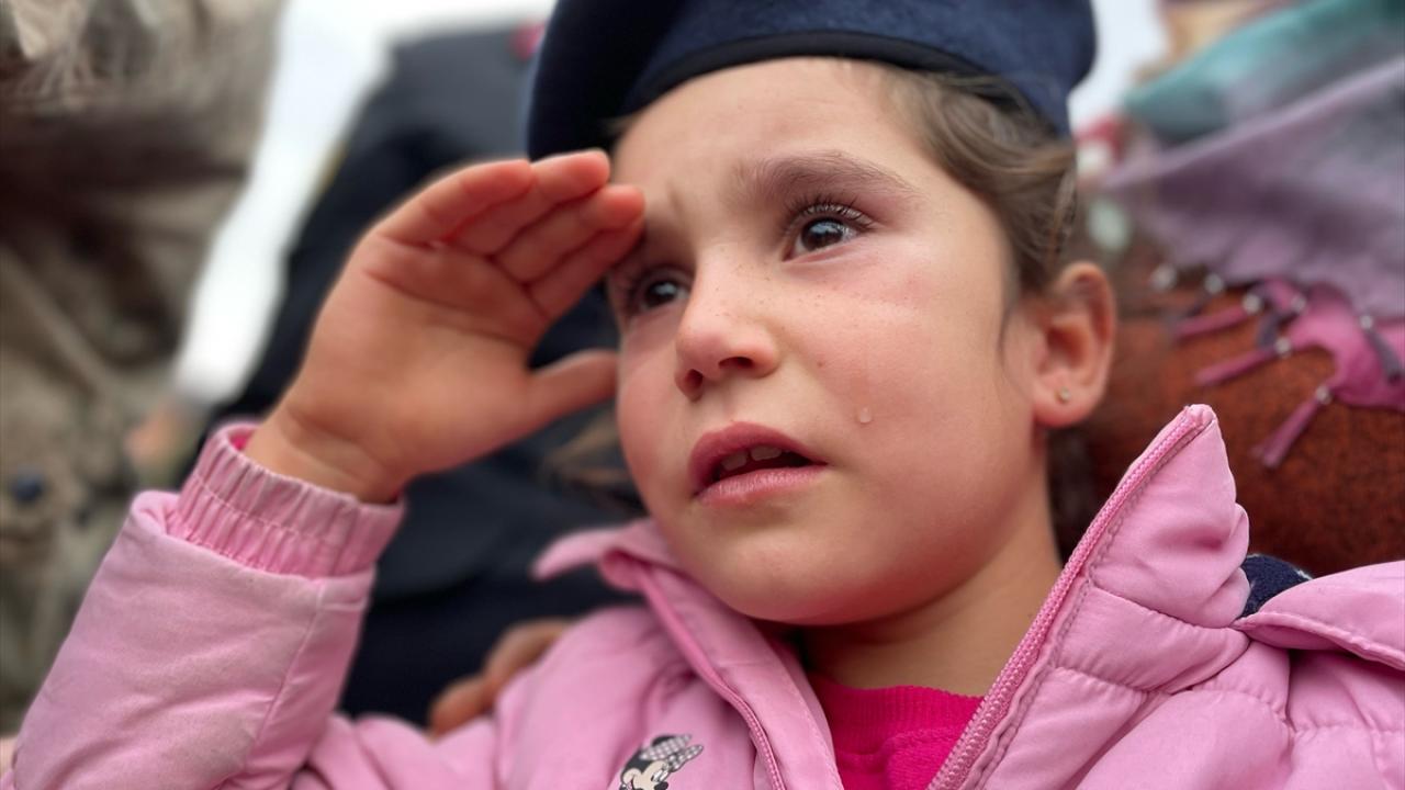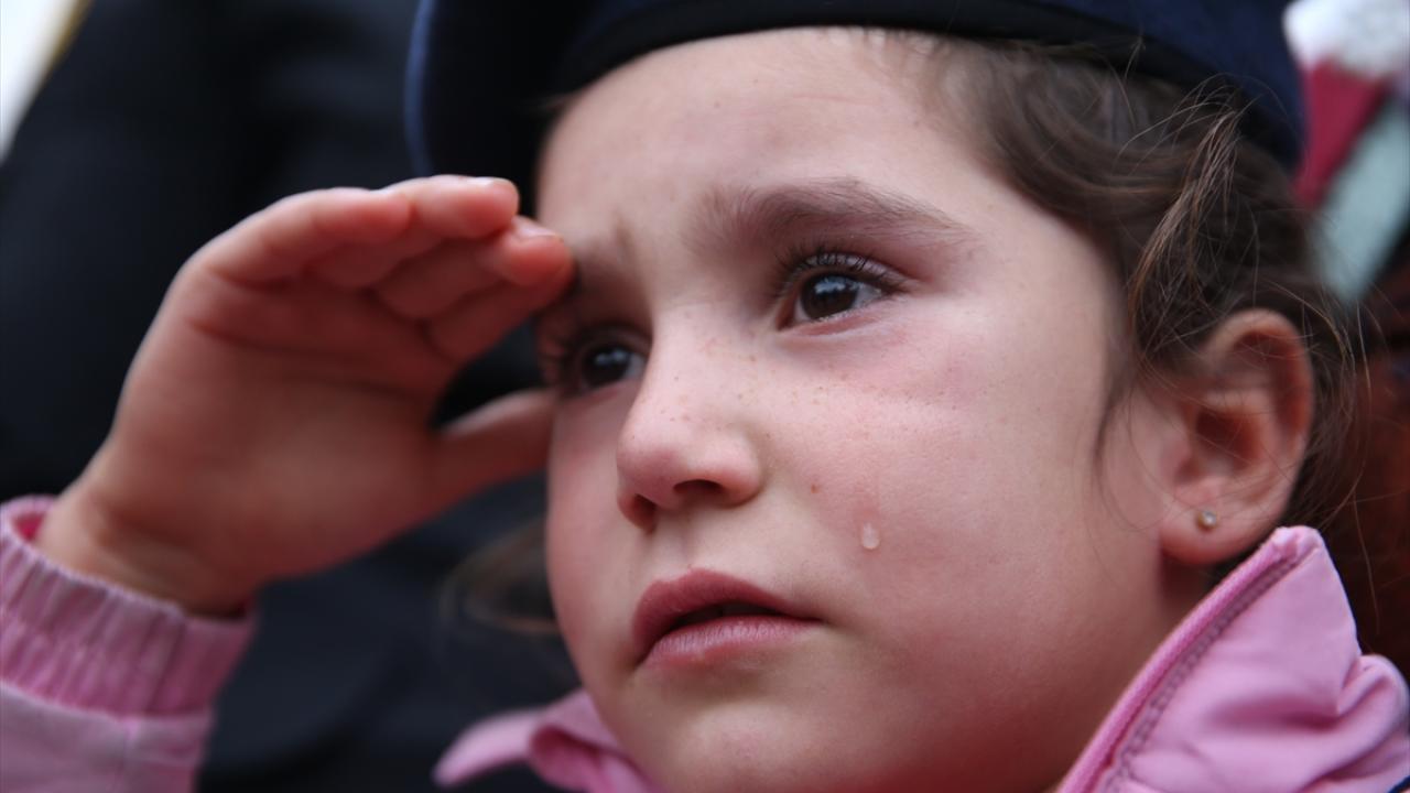 Şehidin kız kardeşi Zeynep (solda) ile erkek kardeşi Efe Ali (sağda) ağabeyinin tabutunun başında gözyaşı döktü.