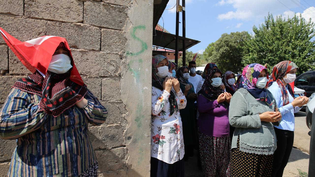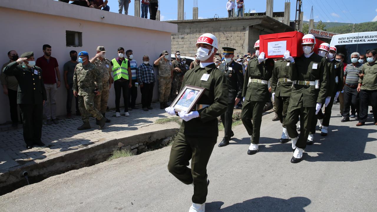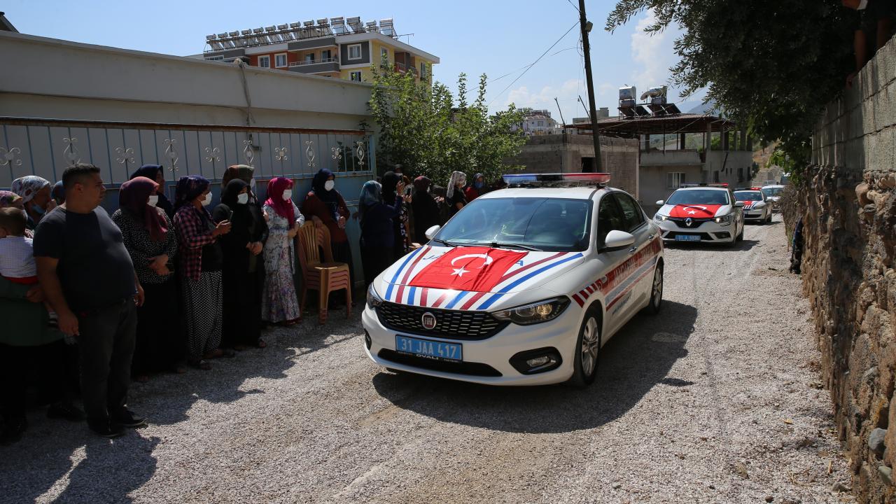 Hatay Mustafa Kemal Üniversitesi (MKÜ) Sağlık Uygulama ve Araştırma Hastanesi morgundan alınan şehidin Türk bayrağına sarılı cenazesi, babaevinde helallik alınmasının ardından Akbez Merkez Camisi`ne getirildi.