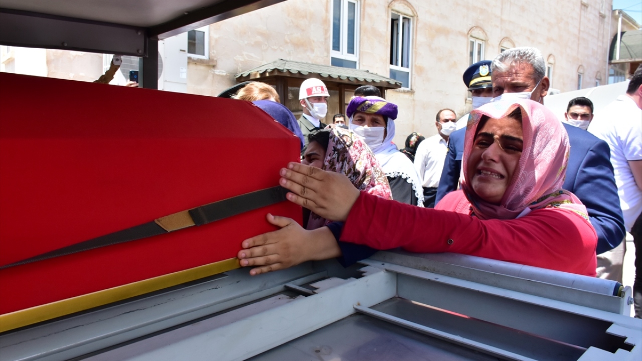 Adıyaman Yeni Mezarlık morgundan alınan 29 yaşındaki Gül`ün Türk bayrağına sarılı naaşı, Yeni Mezarlık Camii`ne getirildi.