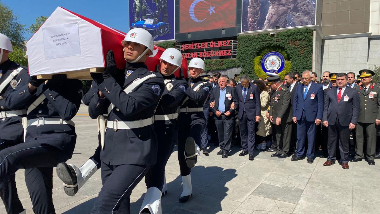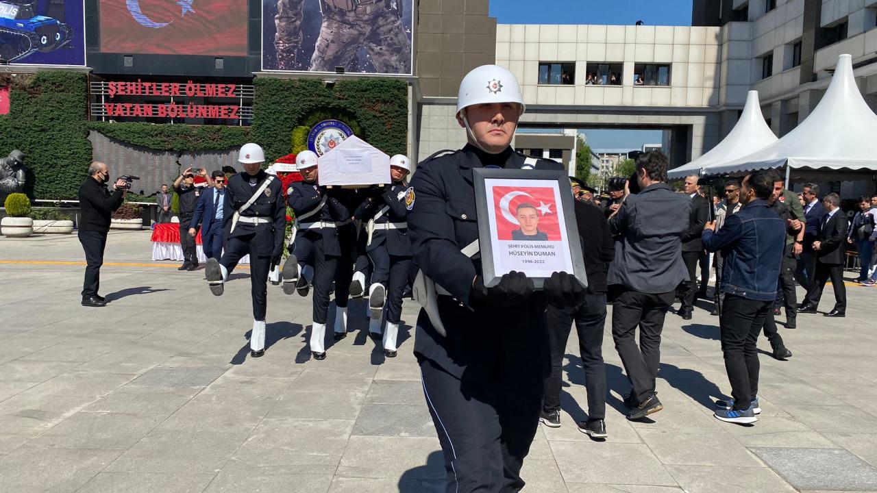 Sultanbeyli’de kaçan aracı kovalarken TIR’a çarparak ağır yaralanan, kaldırıldığı hastanede de şehit düşen 24 yaşındaki polis memuru Hüseyin Duman için İstanbul İl Emniyet Müdürlüğü'nde tören düzenlendi.