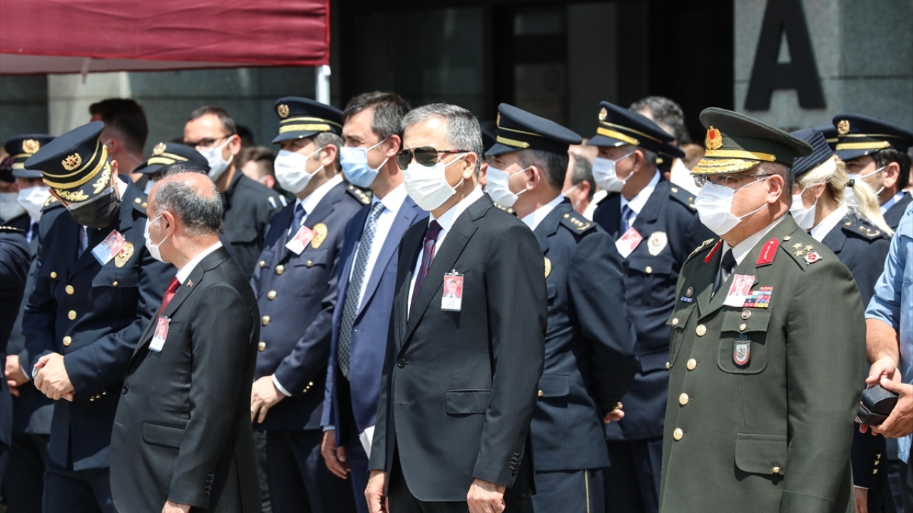 Şehit polisin Türk bayrağına sarılı naaşının tören alanına getirilmesinin ardından saygı duruşunda bulunuldu.