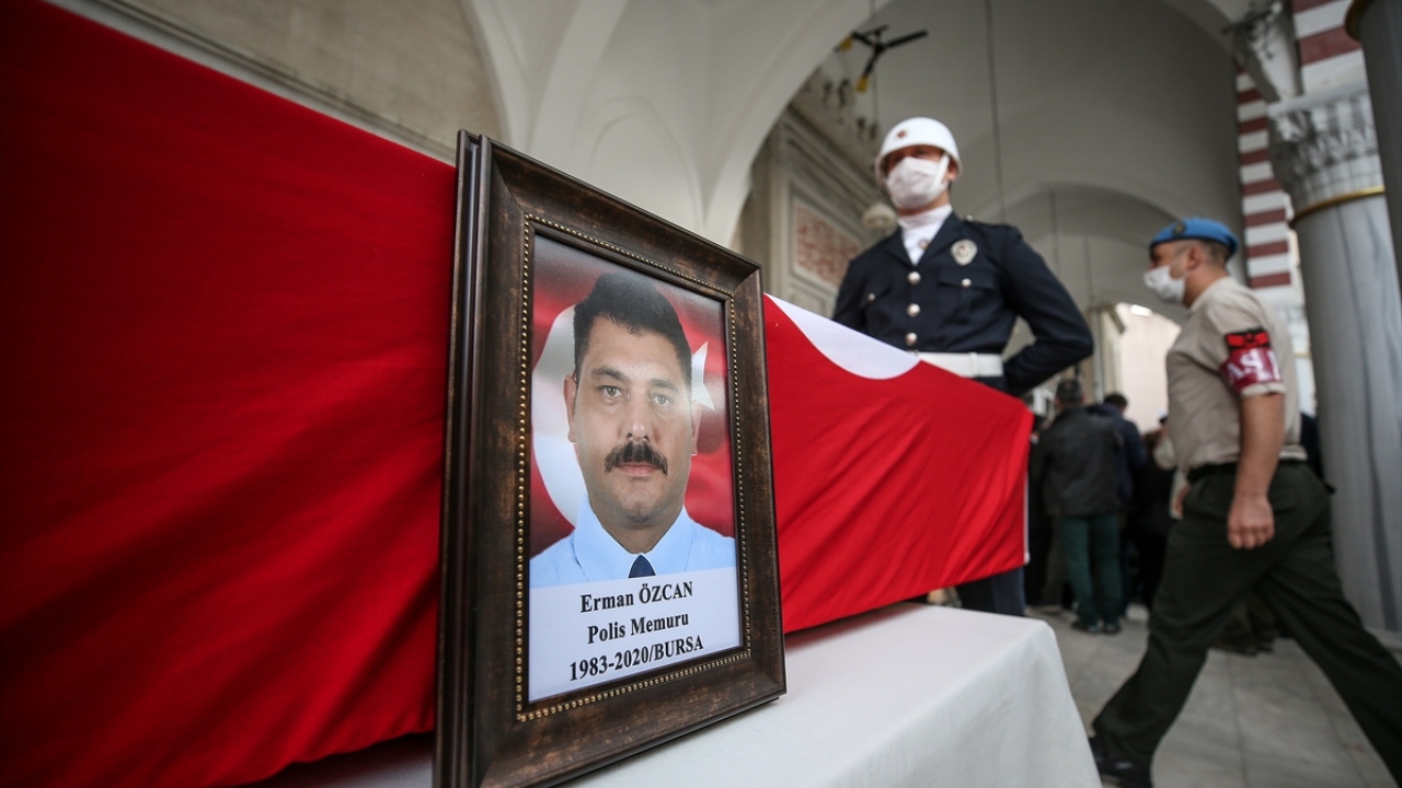 Bursa'da kavgaya müdahale ederken silahla açılan ateş sonucu şehit olan polis memuru Erman Özcan'ın cenazesi toprağa verildi.