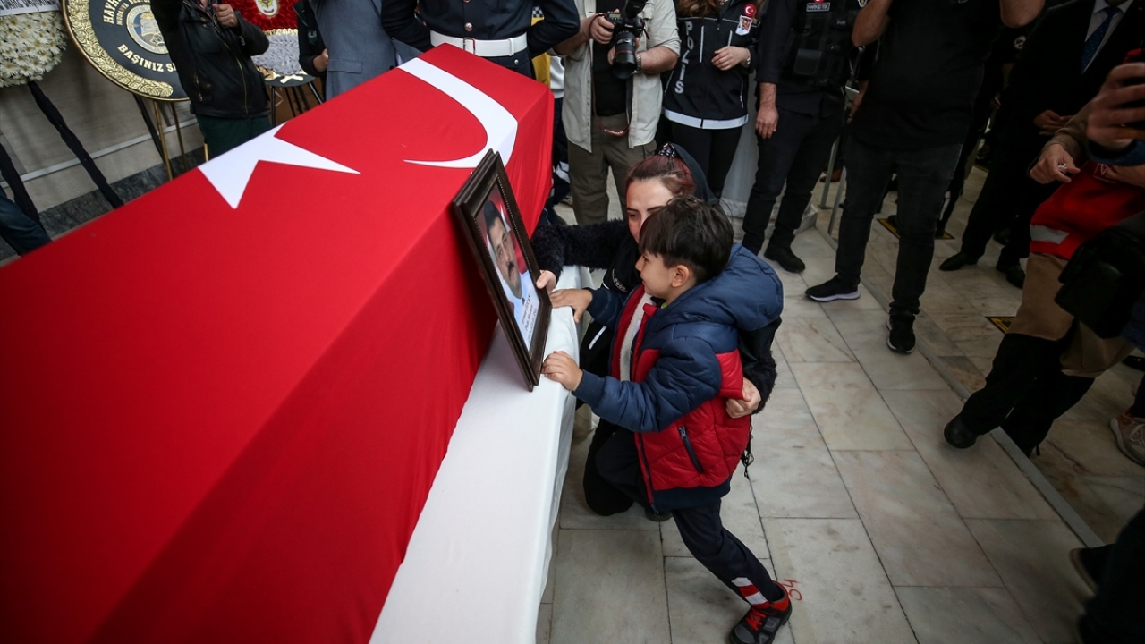 Gazi Orhanbey Camisi`nde düzenlenen törende Erman Özcan`ın eşinin polis yeleği (sağda), oğlunun (solda) da polis üniforması giydiği görüldü.