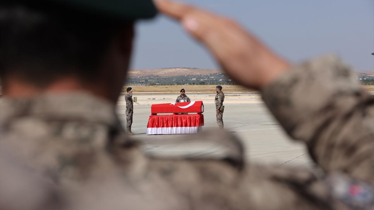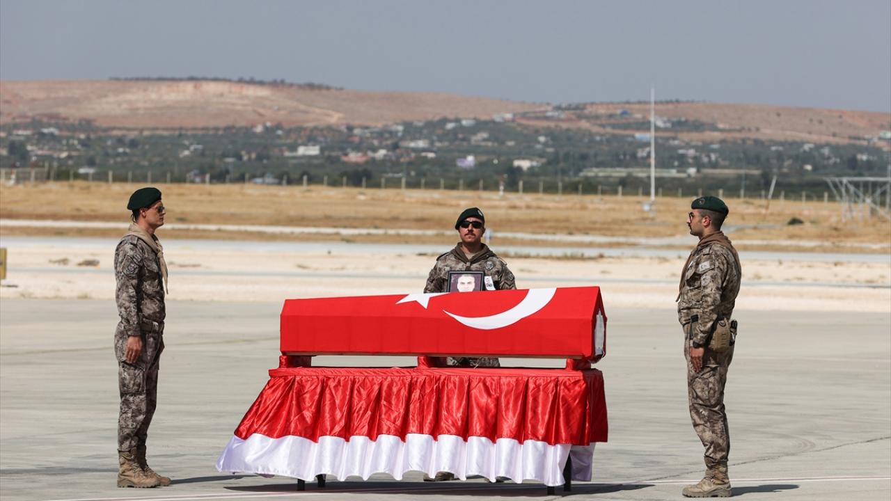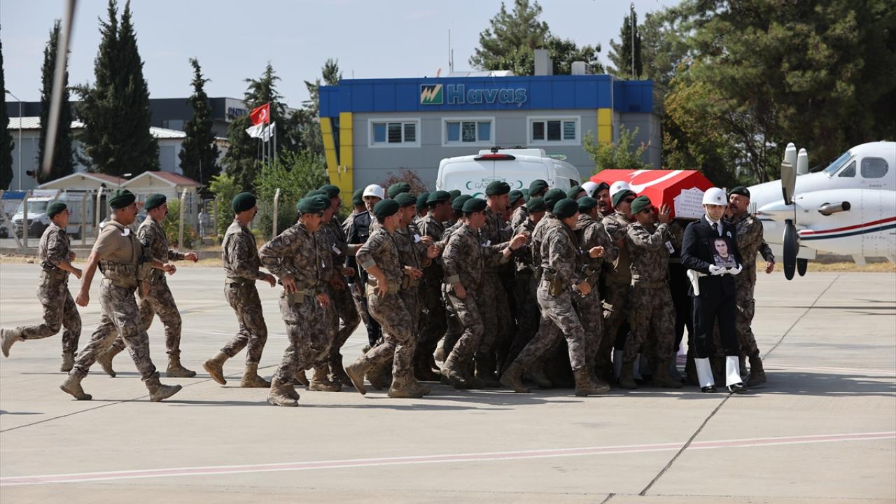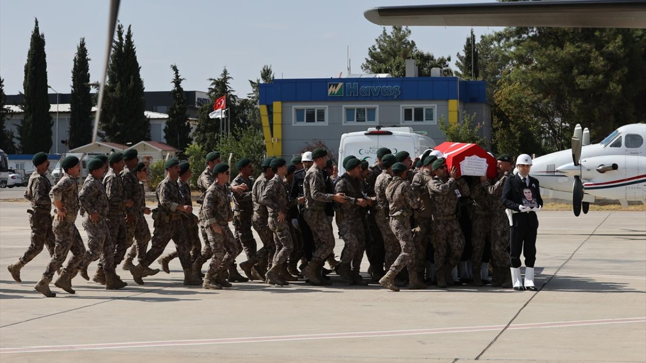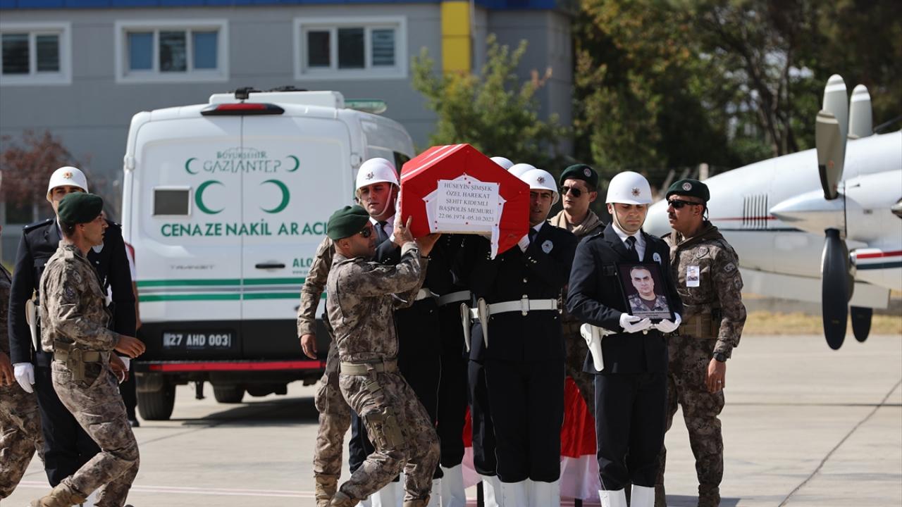 Şehit Şimşek`in naaşı cenaze aracıyla Gaziantep Havalimanı`na getirildi.