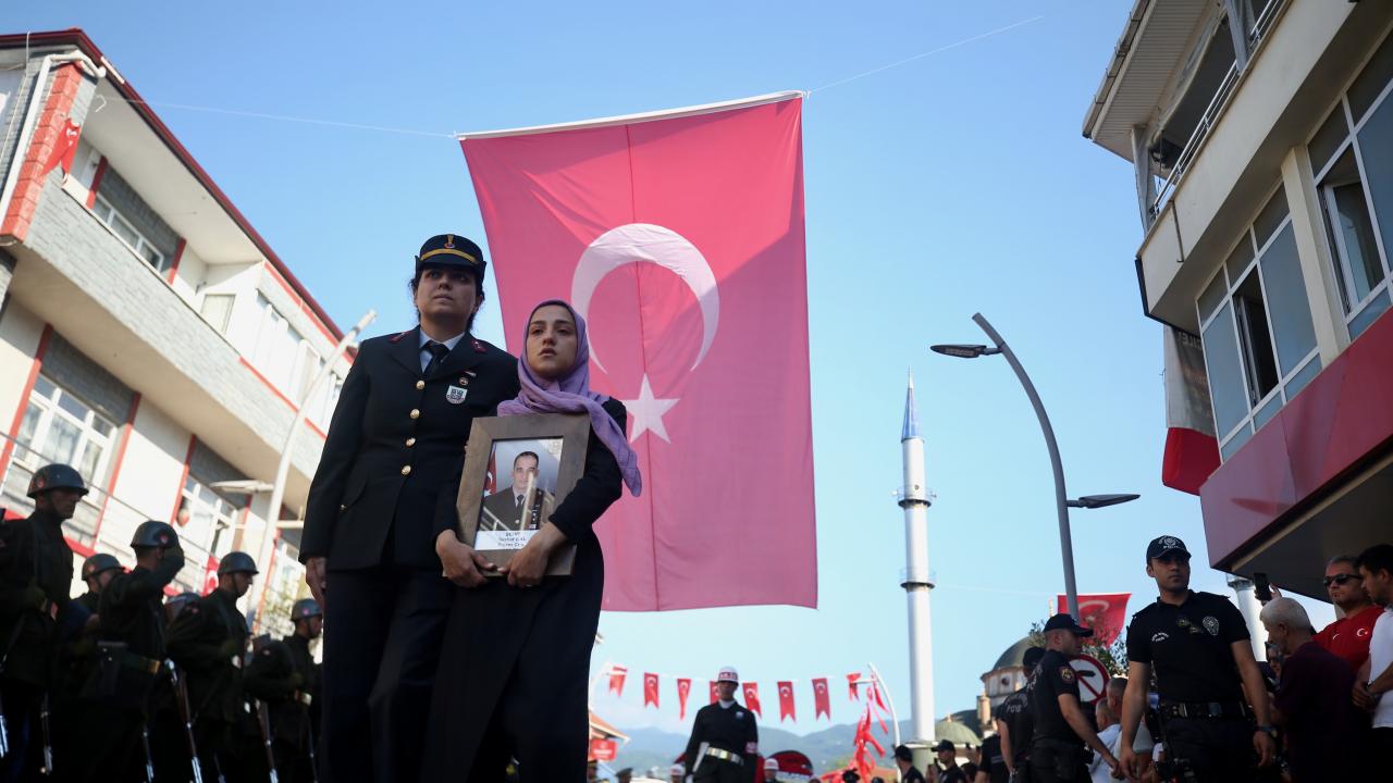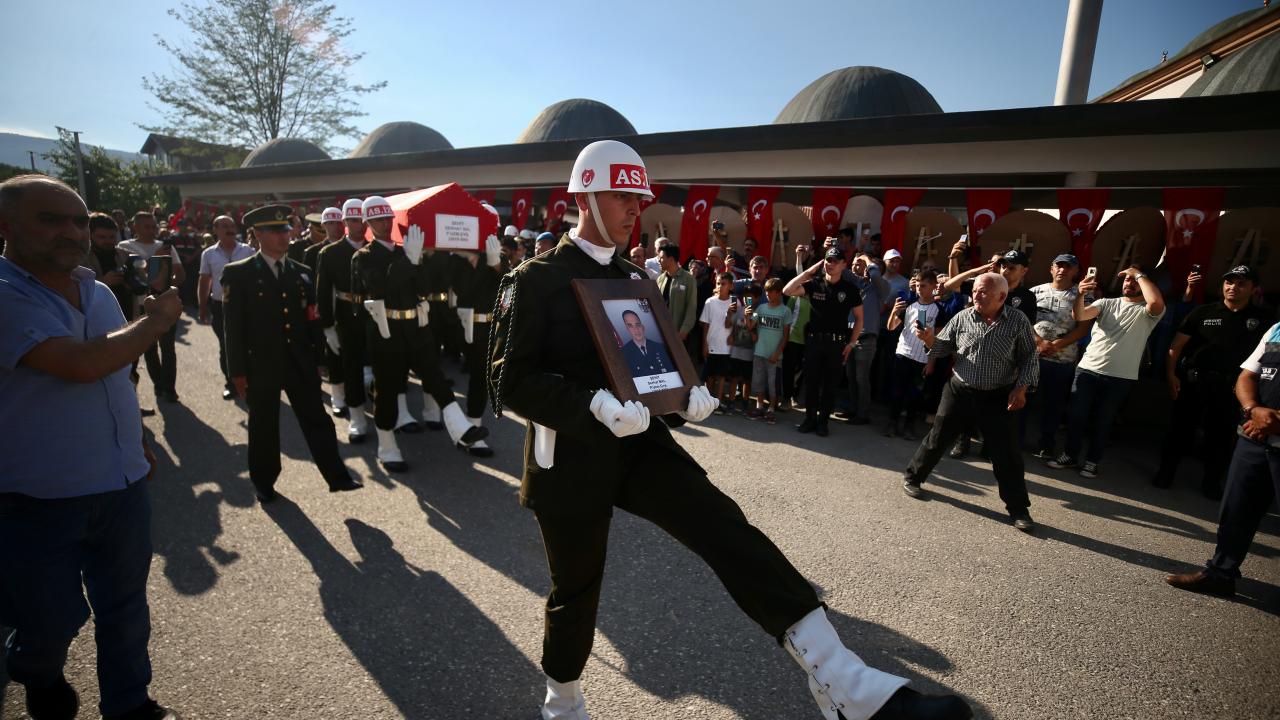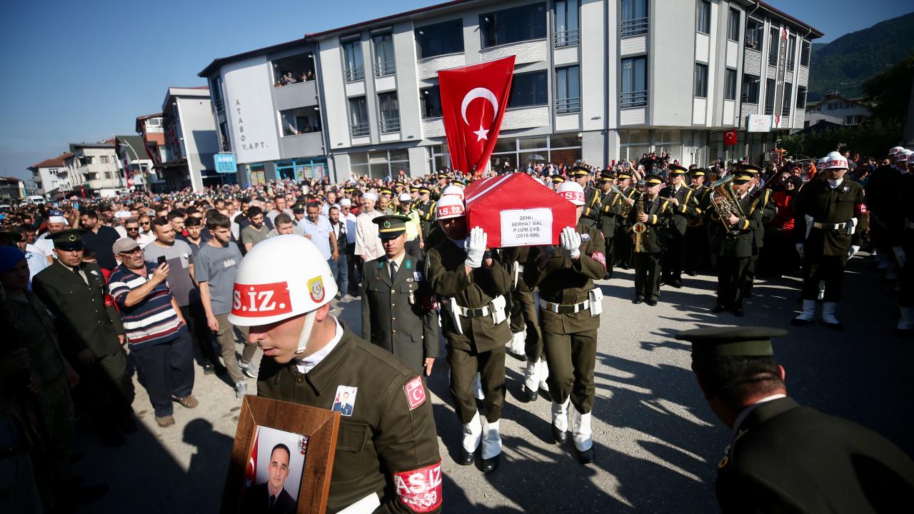 Şehidin naaşı, cenaze namazının ardından protokol üyeleri ve vatandaşlar tarafından cenaze nakil aracına taşındı.