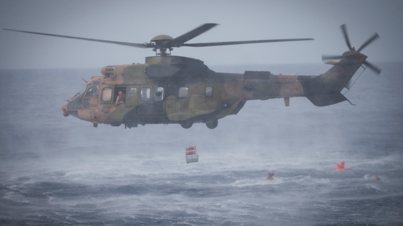"Türkiye`den helikopter konuşlu firkateyn, 2 sahil güvenlik korveti, 4 sahil güvenlik botu, 6 helikopter, 3 uçak, sahil güvenlik özel harekat timi ile Dalış Emniyet Güvenlik ve Arama Kurtarma Timi, KKTC`den 3 sahil güvenlik botu, 2 helikopter, römorkör ve arama kurtarma birliği iştirak etmiştir."
