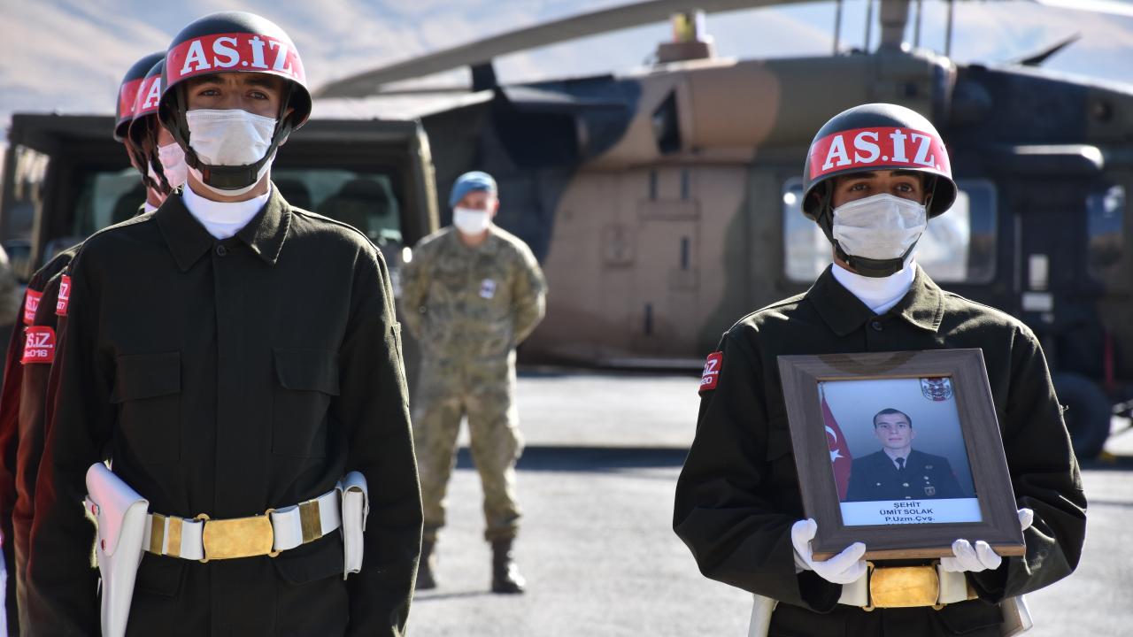 Irak'ın kuzeyindeki Avaşin bölgesinde el yapımı patlayıcının infilak etmesi sonucu ağır yaralanan ve kaldırıldığı hastanede şehit olan Piyade Uzman Çavuş Ümit Solak için Hakkari'de tören düzenlendi.