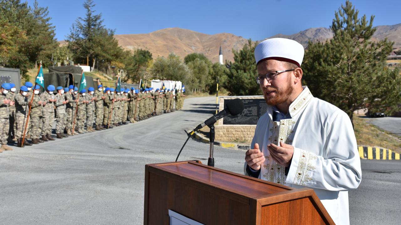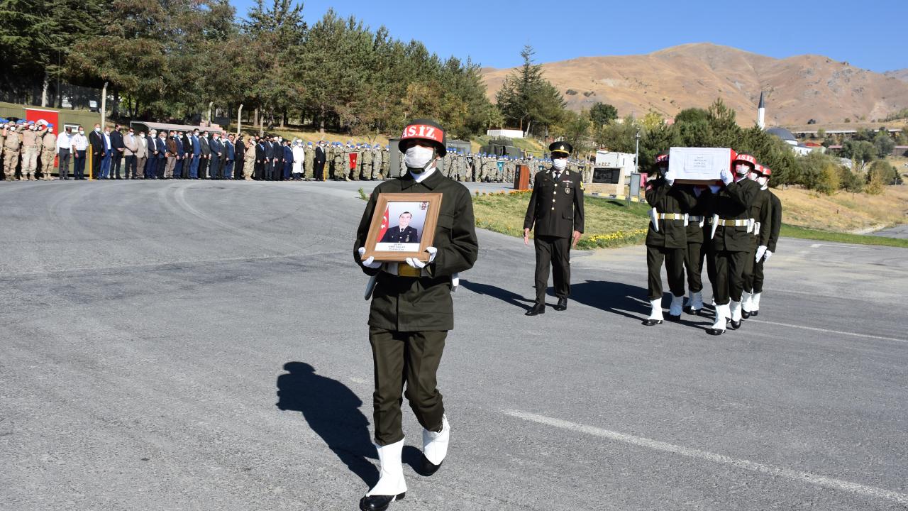 Dağ ve Komando Tugay Komutanlığında yeni tip koronavirüs (Covid-19) tedbirleri uygulanarak gerçekleştirilen törende, şehit Solak`ın Türk bayrağına sarılı naaşı alana getirildi.