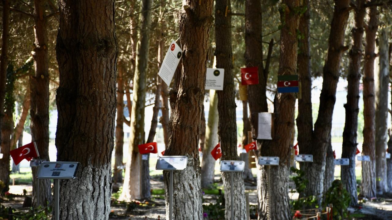 Öğrencilerin eğitim alanının yakınındaki çam ağaçlarına Fethi Sekin`in de aralarında bulunduğu okuldan mezun olan şehitlerin ve gazilerin isimlerinin verildiği orman, öğrenciler tarafından farklı şekilde dizayn edildi.