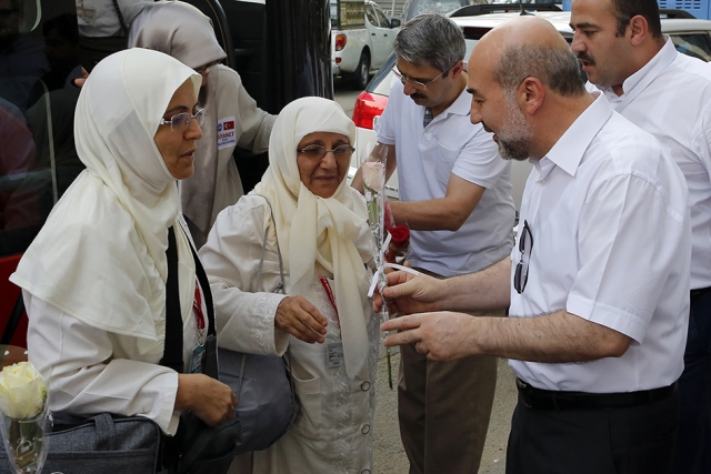 Fetullahçı Terör Örgütü'nün darbe girişimi sırasında şehit düşenlerin yakınları, hac ibadeti için kutsal topraklara ulaştı. Diyanet İşleri Başkanlığı yetkilileri tarafından Aziziye bölgesinde gül ve zemzem suyu ikram edilerek karşılanan şehit yakınları, kalacakları otellere yerleştirildi.