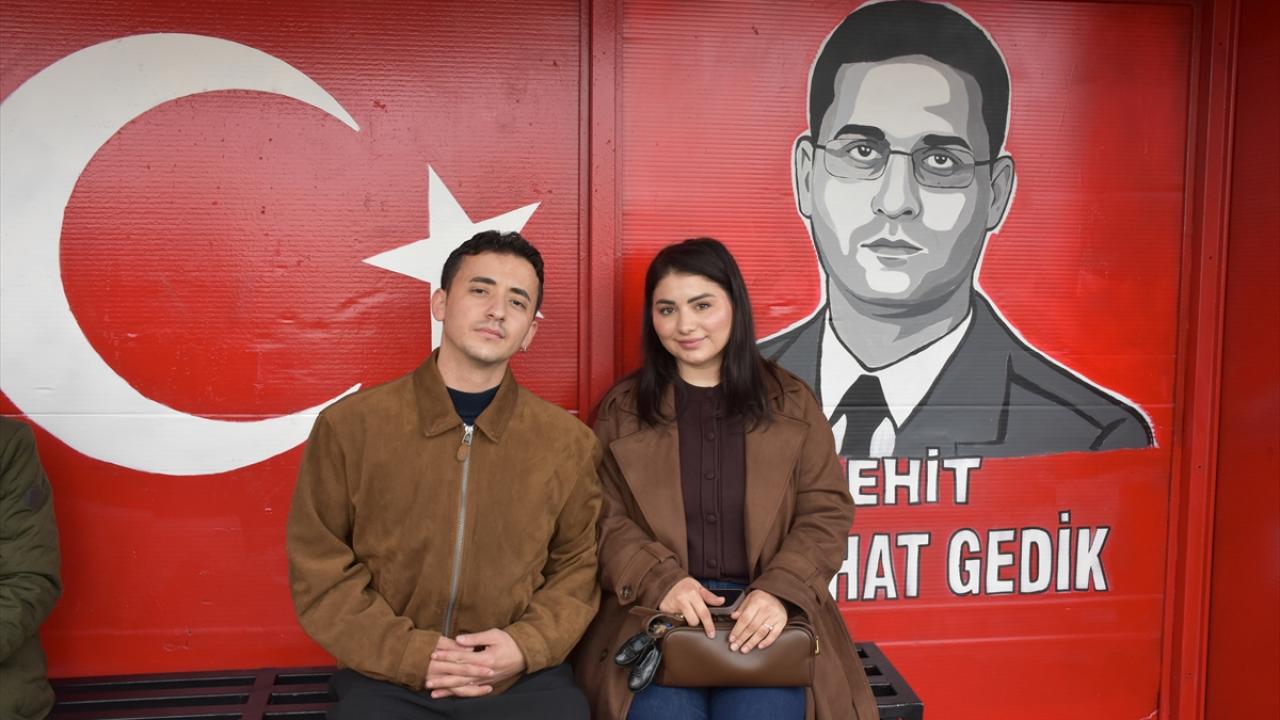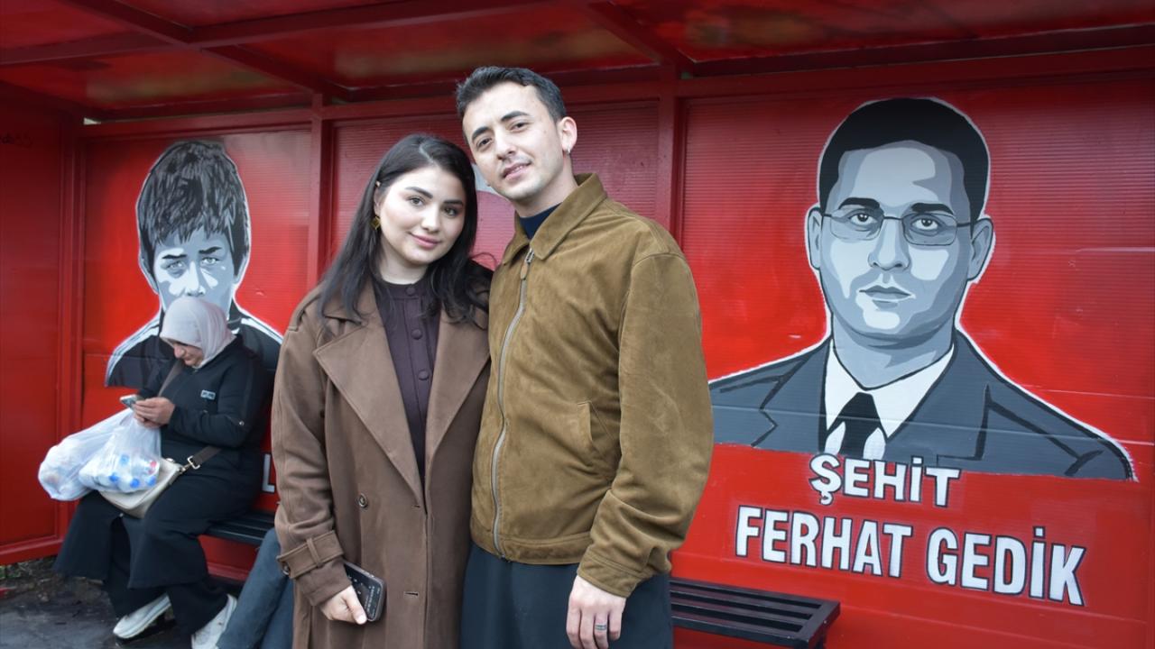 Melisa Kaman, eşi ile daha önce şehit polis memuru Emre Albayrak`ın resmini, kabrinin bulunduğu mahalledeki durağa yaptıklarını söyledi.