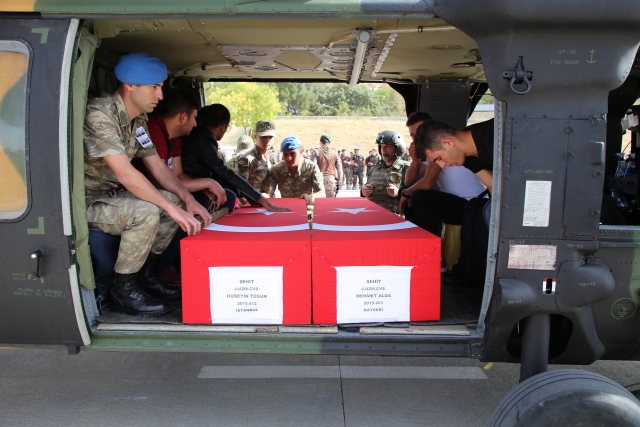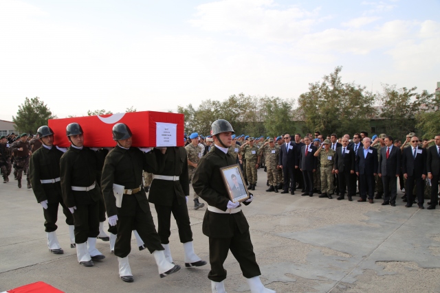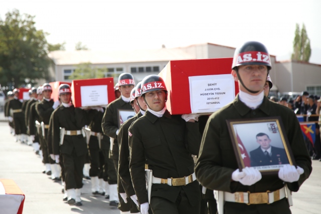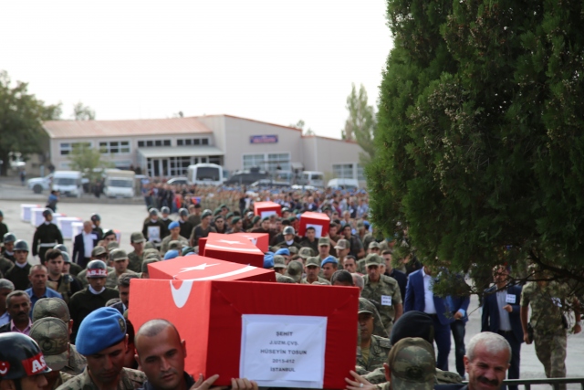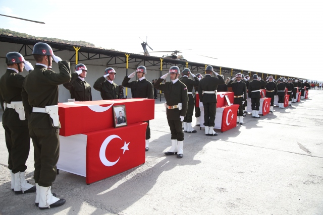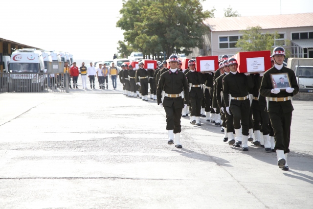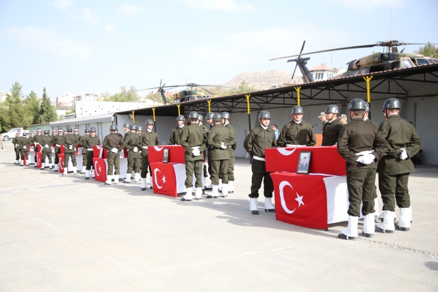 Yapımı süren Şırnak-Van karayolunda güvenliği sağlayan askerlere PKK'lı teröristlerce düzenlenen saldırıda şehit düşen 6 asker için Şırnak 23. Jandarma Sınır Tümen Komutanlığında tören düzenlendi.