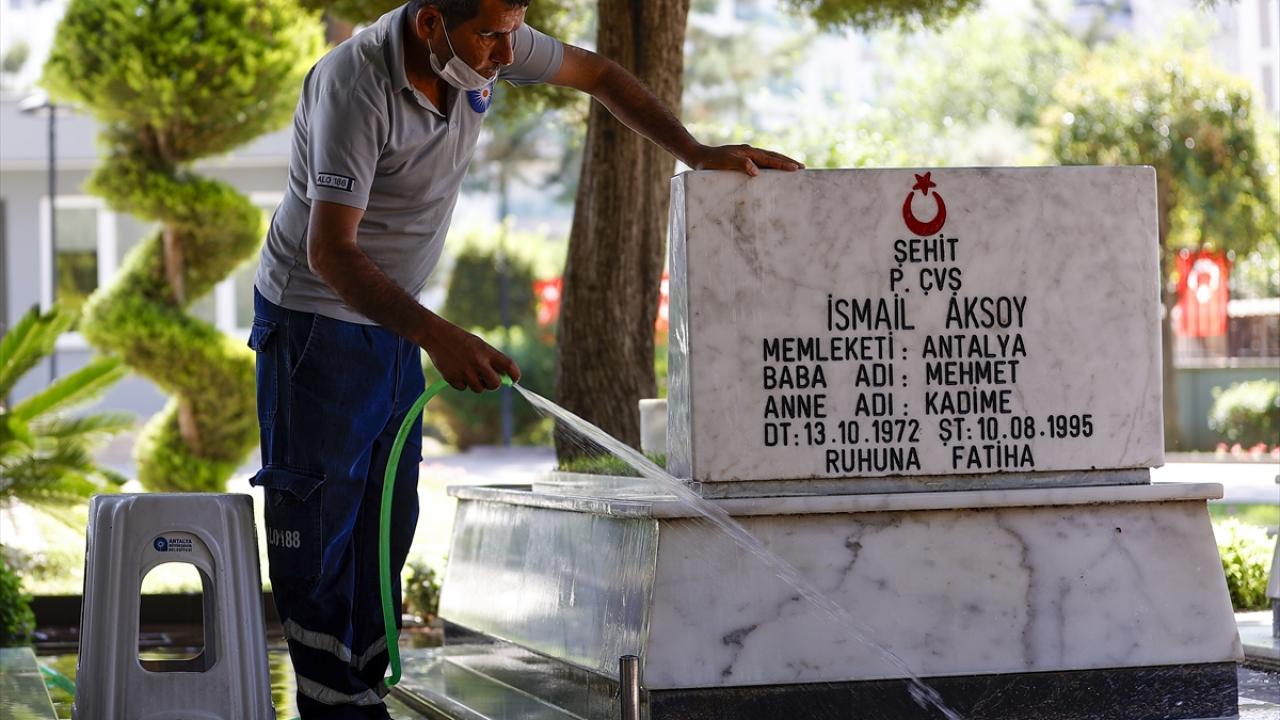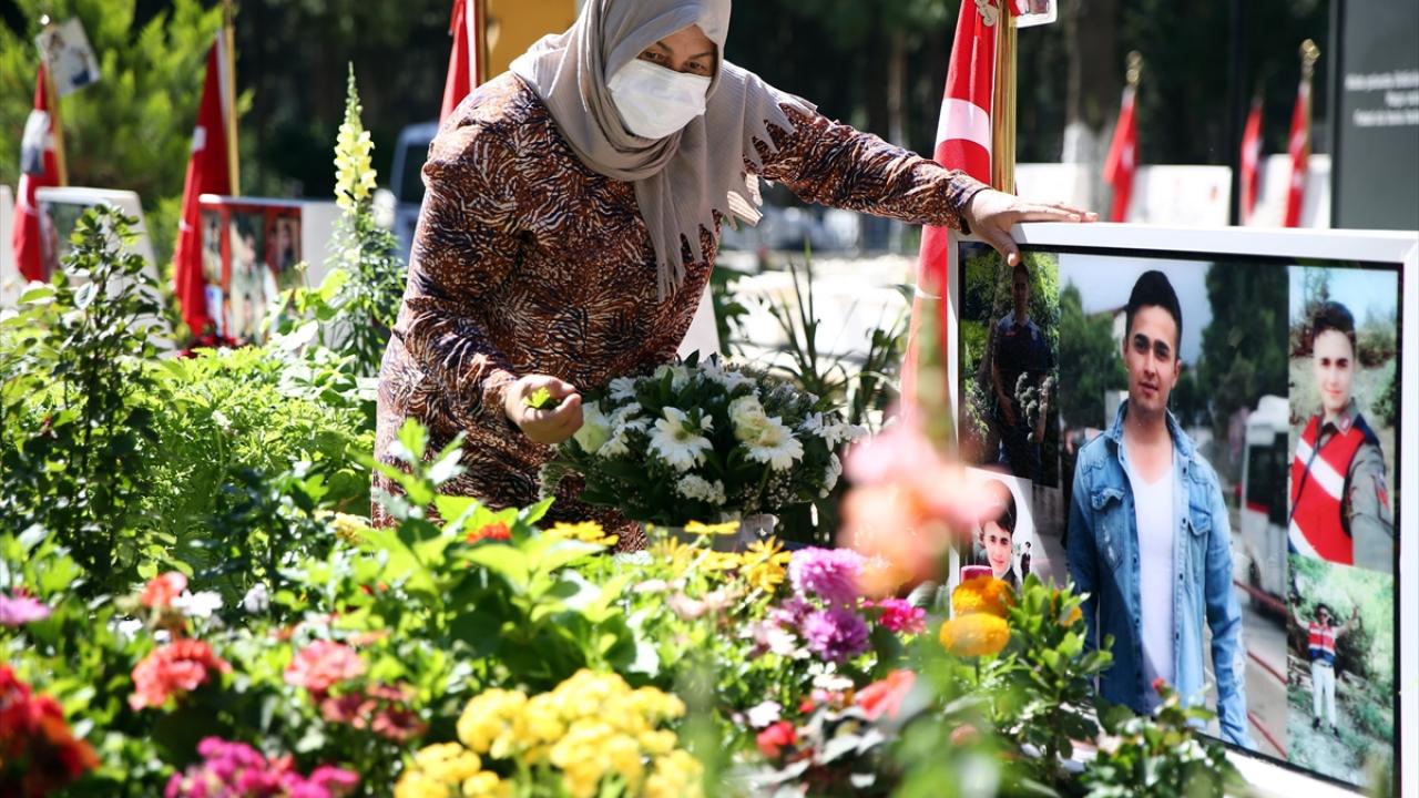 Önce evlatlarının kabirlerini ziyaret eden, sonrasında da diğer şehit aileleriyle bayramlaşan vatandaşlar, çiçeklerini tazeledikleri mezarları suladı, Kur`an-ı Kerim okuyup dualar etti.