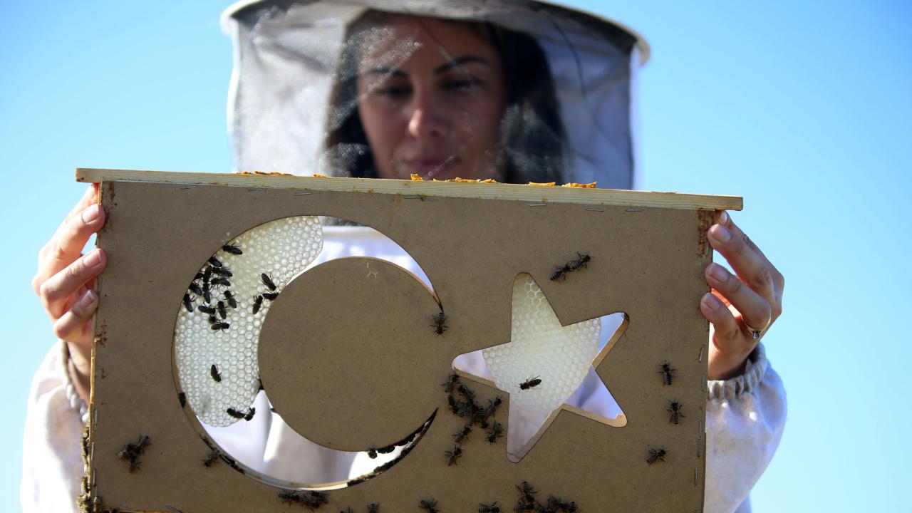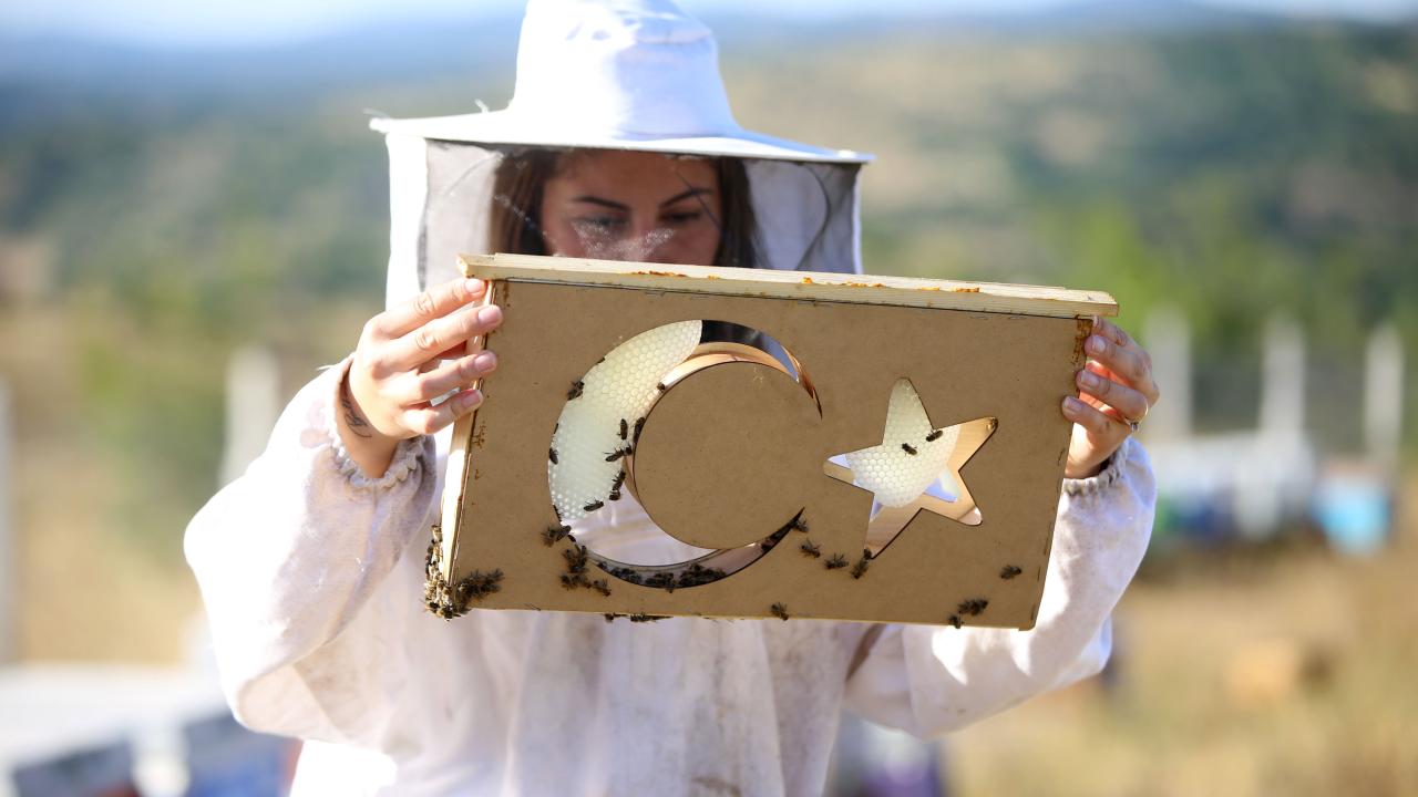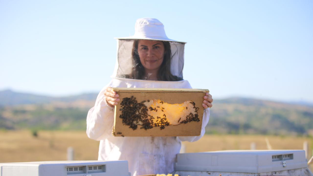 Kırklareli'nde arıcılık yapan Ceylin Akol, farklı şekillerdeki çerçeveler ile elde ettiği petek balı sayesinde kentin coğrafi işaretli meşe balının tanıtımına katkı sağlıyor.