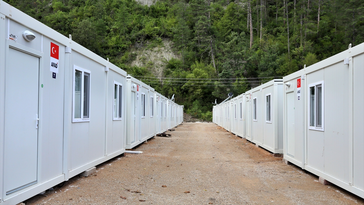 Sinop'un Ayancık ilçesinde 11 Ağustos'ta yaşanan sel felaketinde 40 evin yıkıldığı Babaçay köyünde, evsiz kalan vatandaşlar AFAD tarafından oluşturulan yaşam konteynerlerine yerleştirildi.