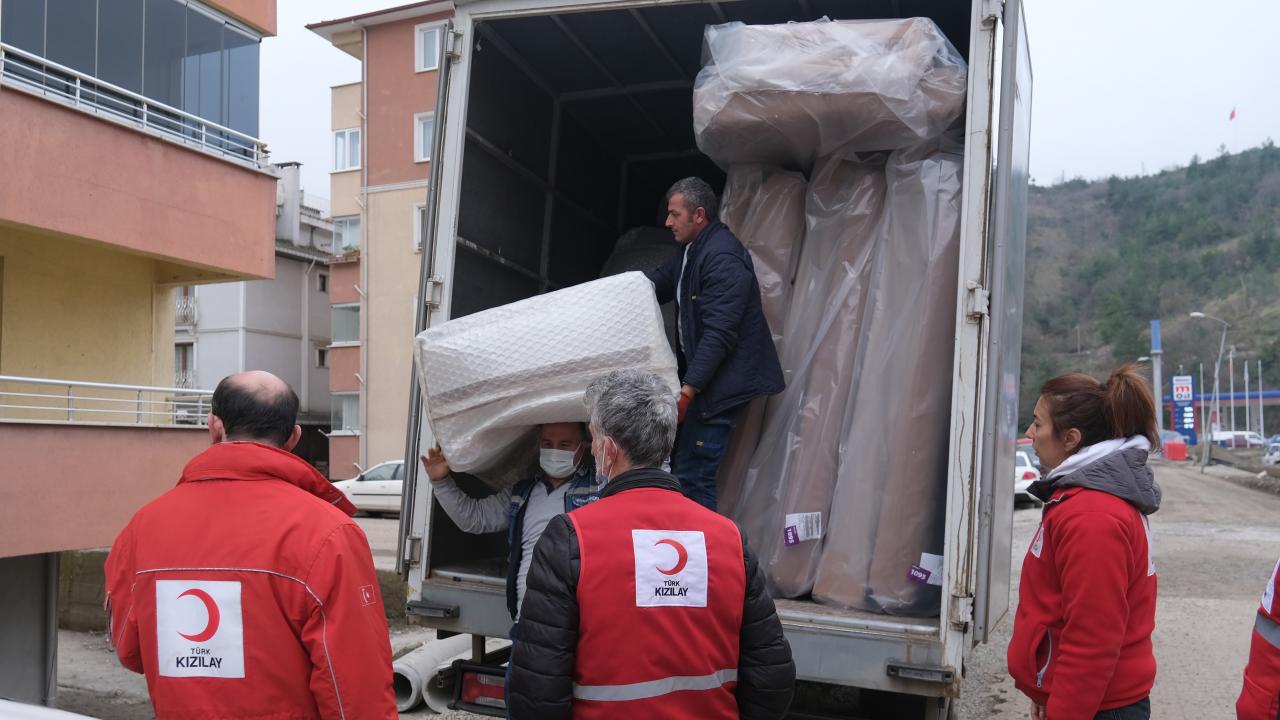Türk Kızılay, Bozkurt`taki selzedelere mobilya ve beyaz eşya yardımını sürdürüyor
