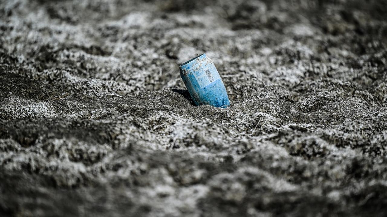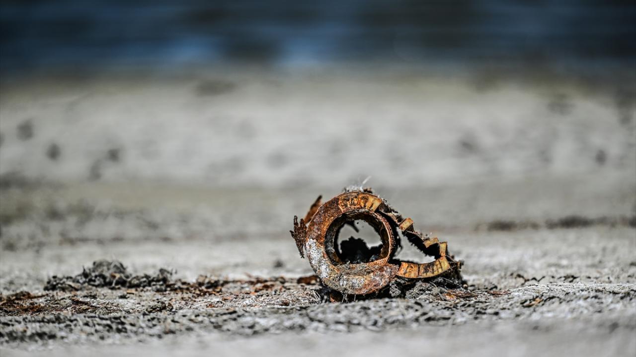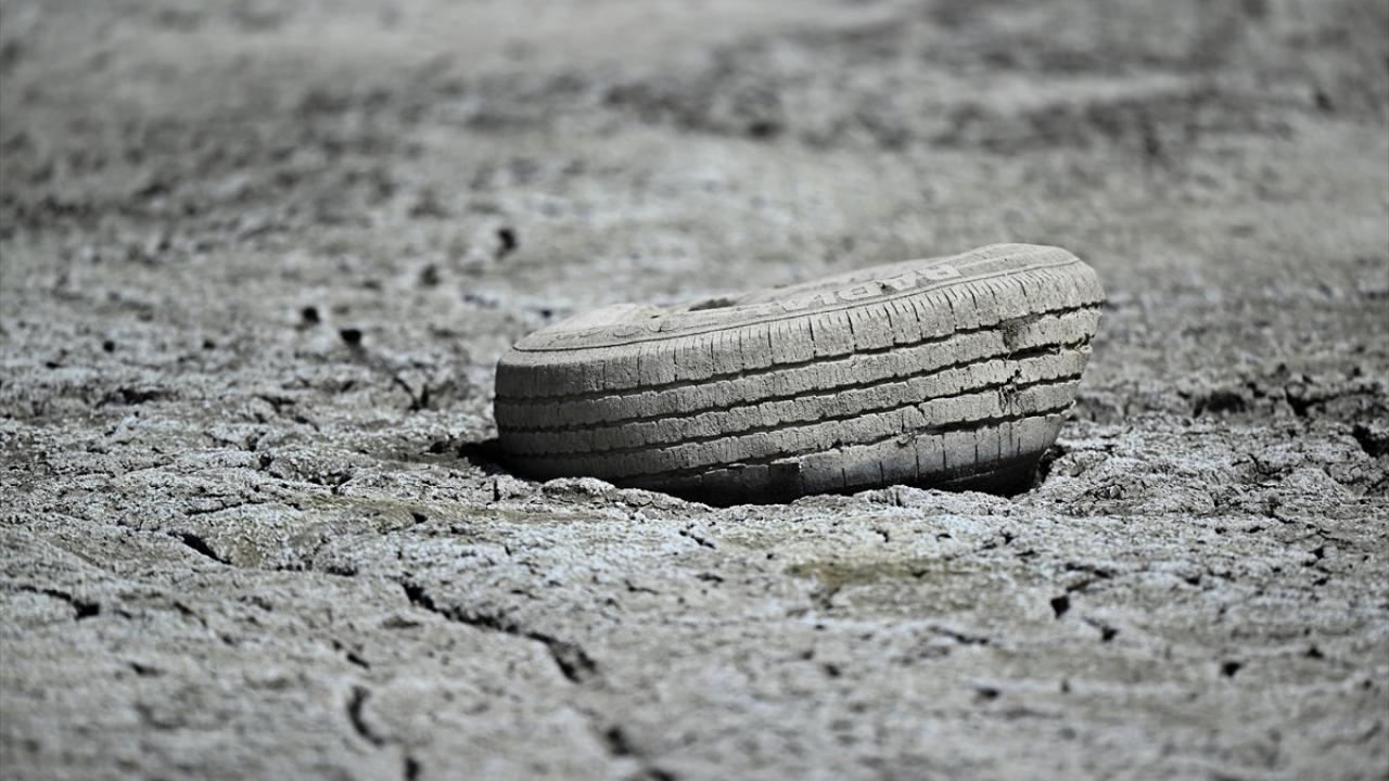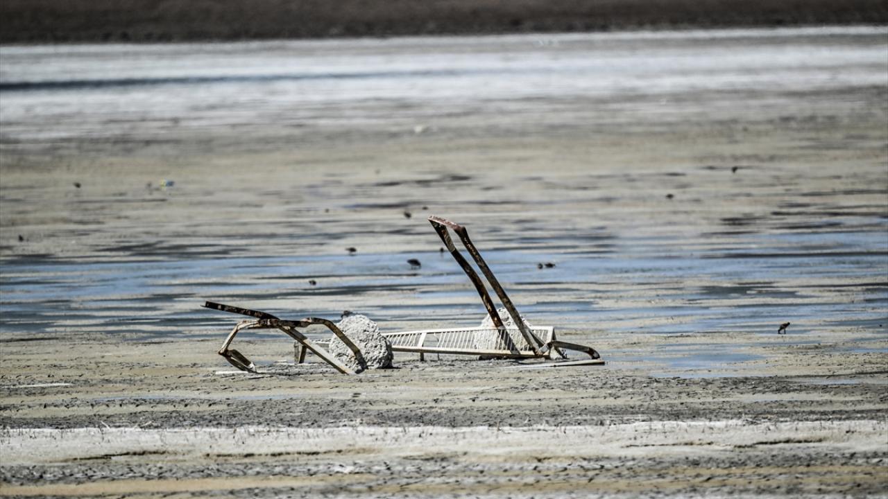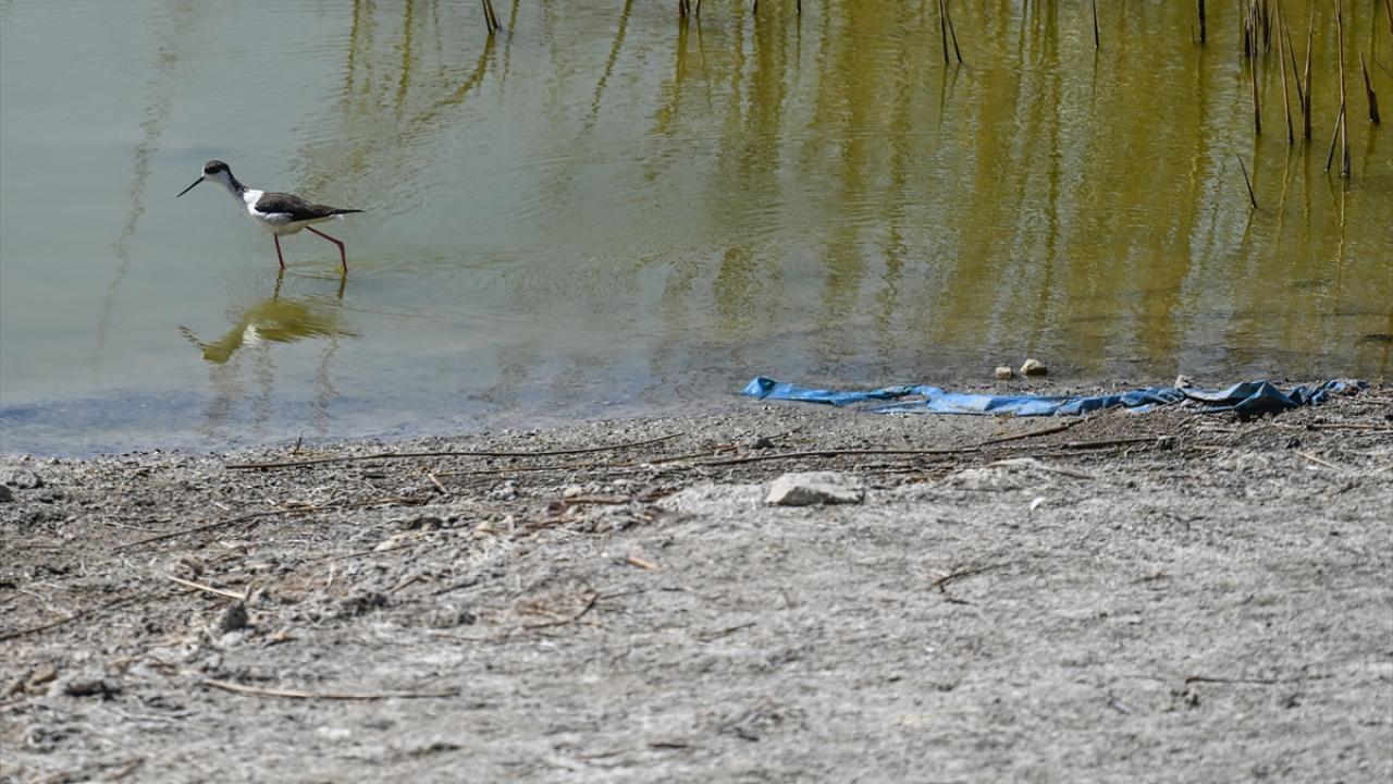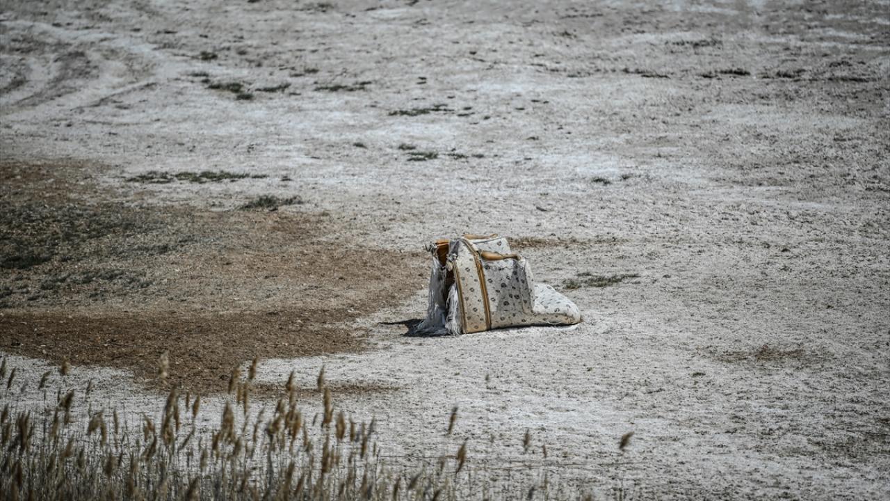 Kuruyan alanlarda çevre kirliliğini gözler önüne seren otomobil plakası, araç lastiği, sandalye, demir masa ve cam şişe gibi atıklar ortaya çıktı.