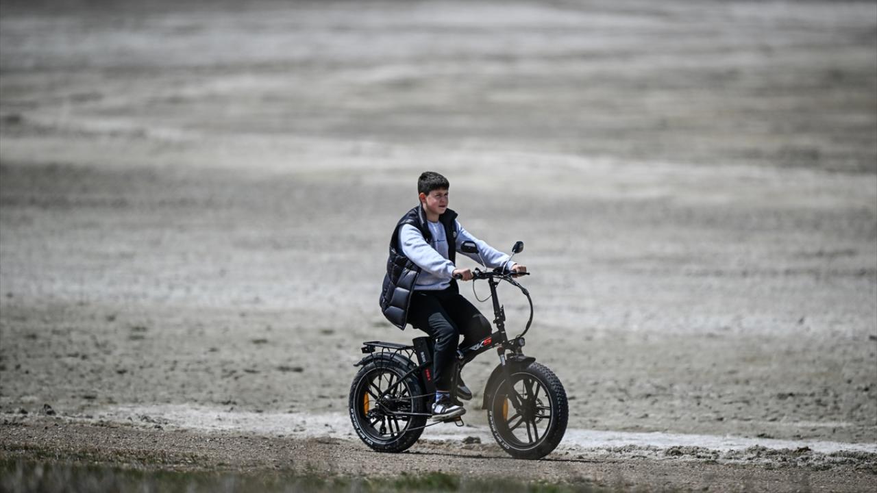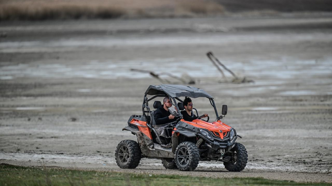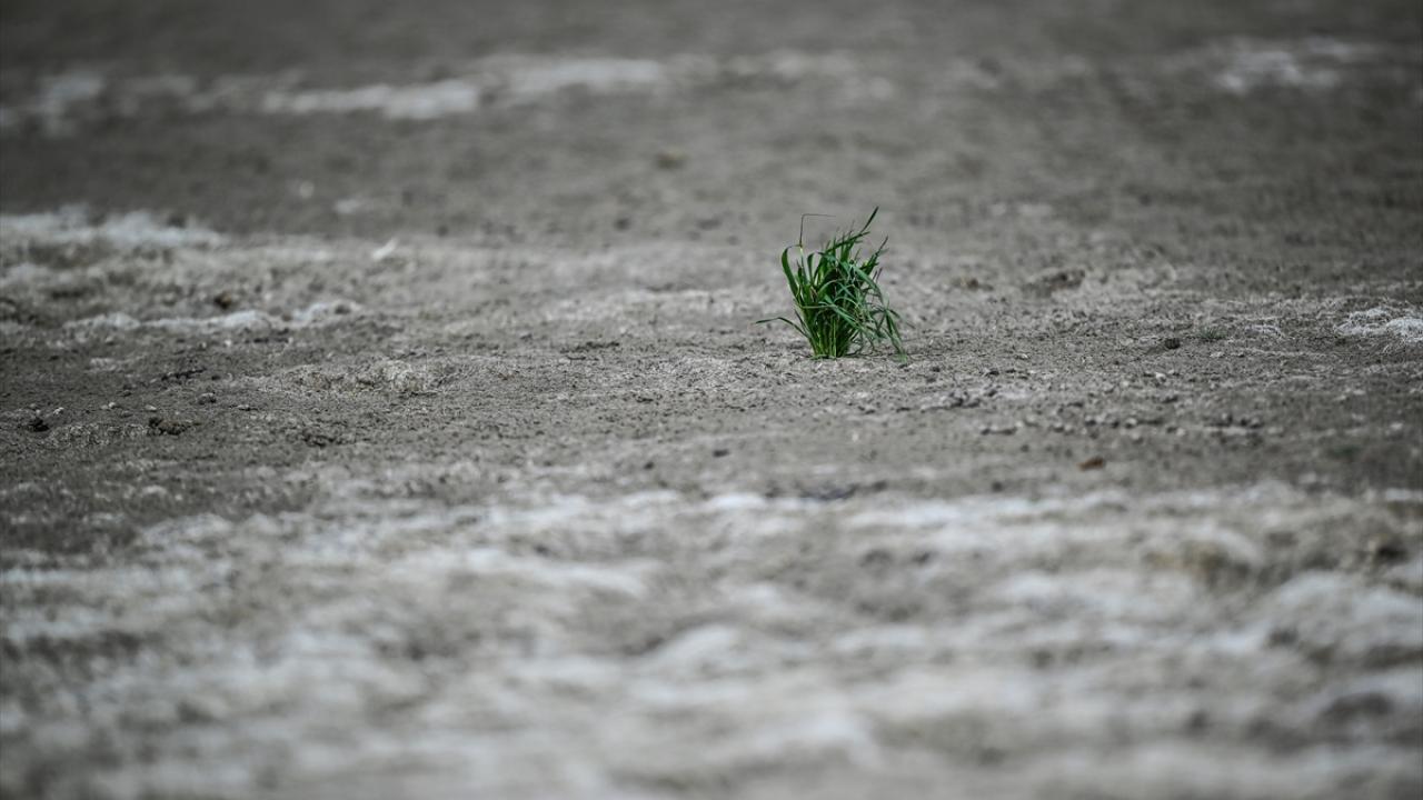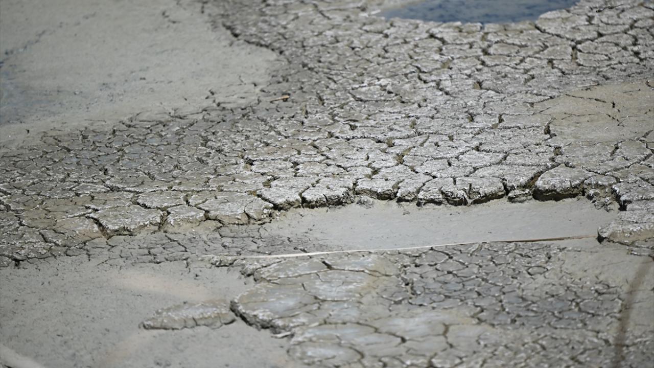 Yeterli oranda yağış almayan göldeki suyun çekilmesiyle birlikte göl tabanında çatlaklar oluştu.