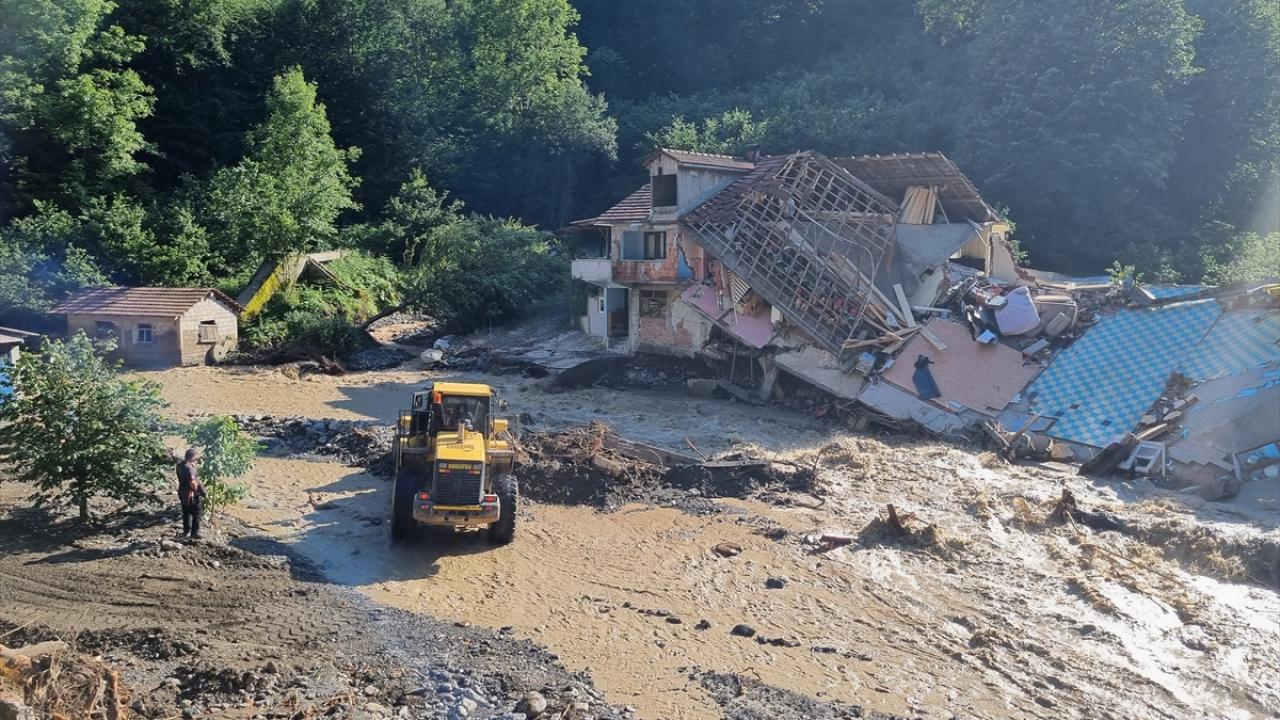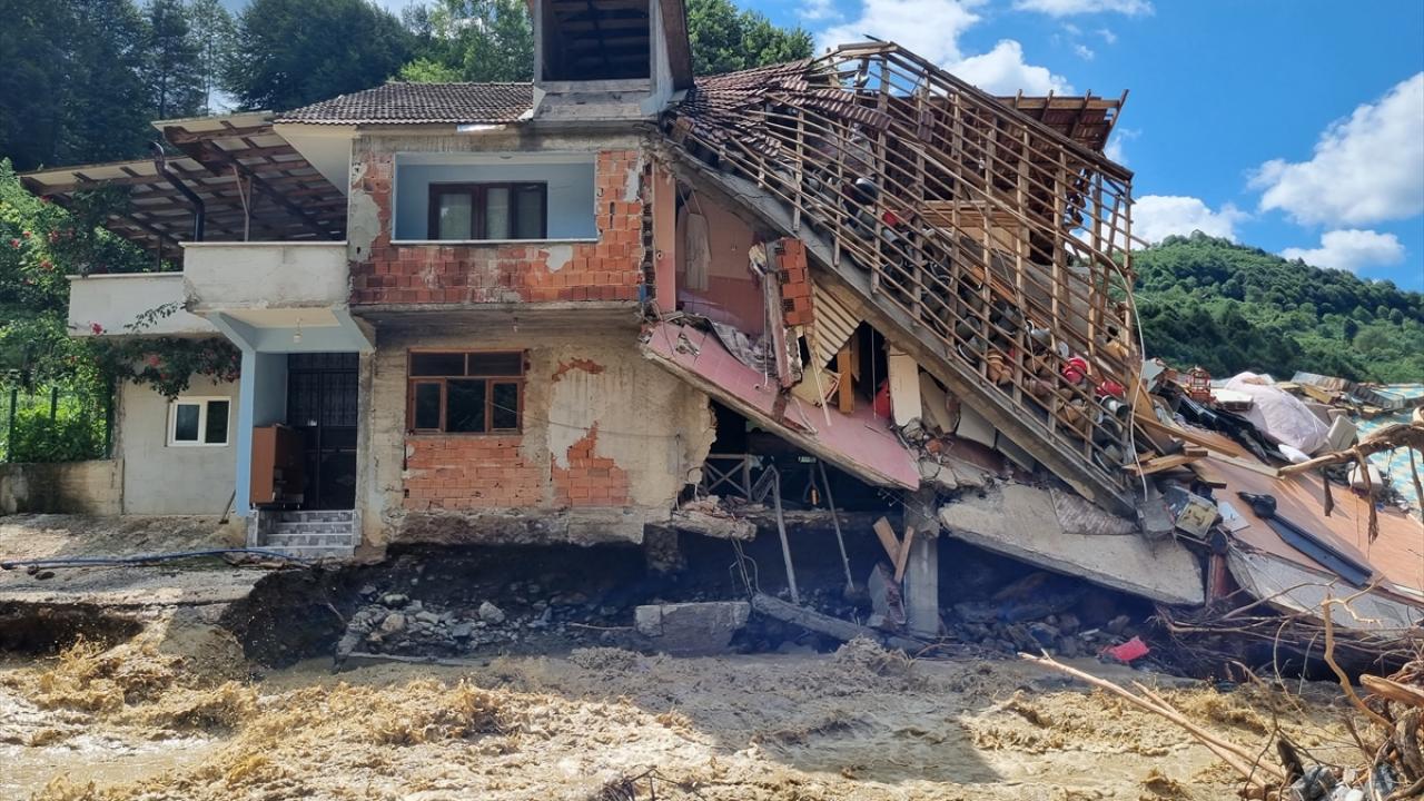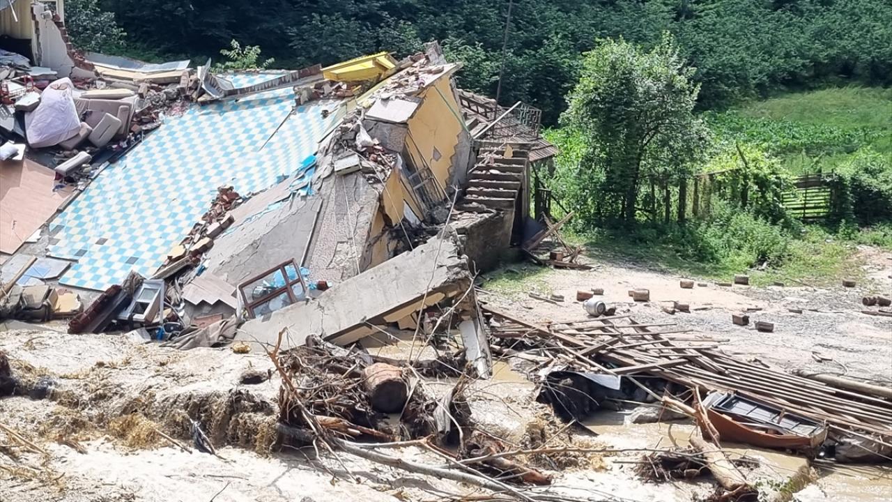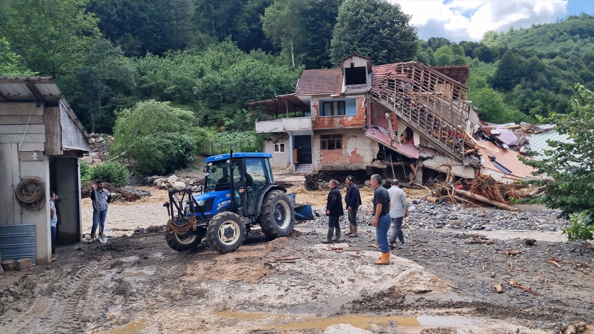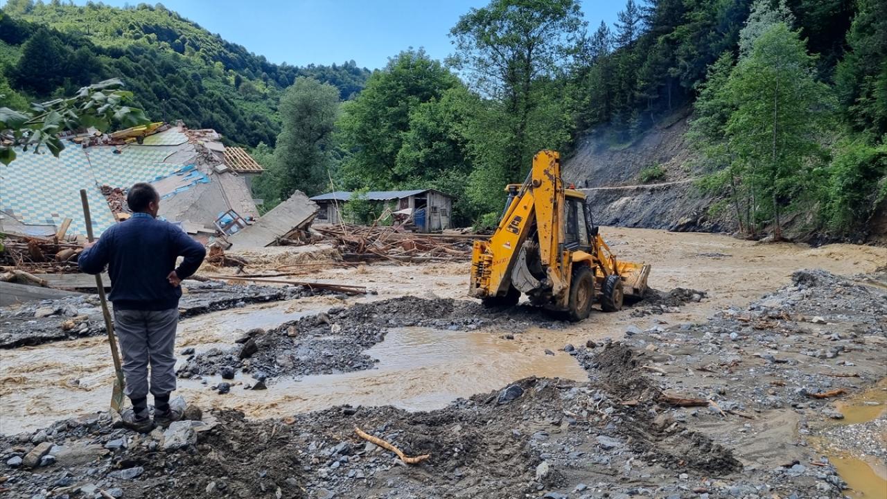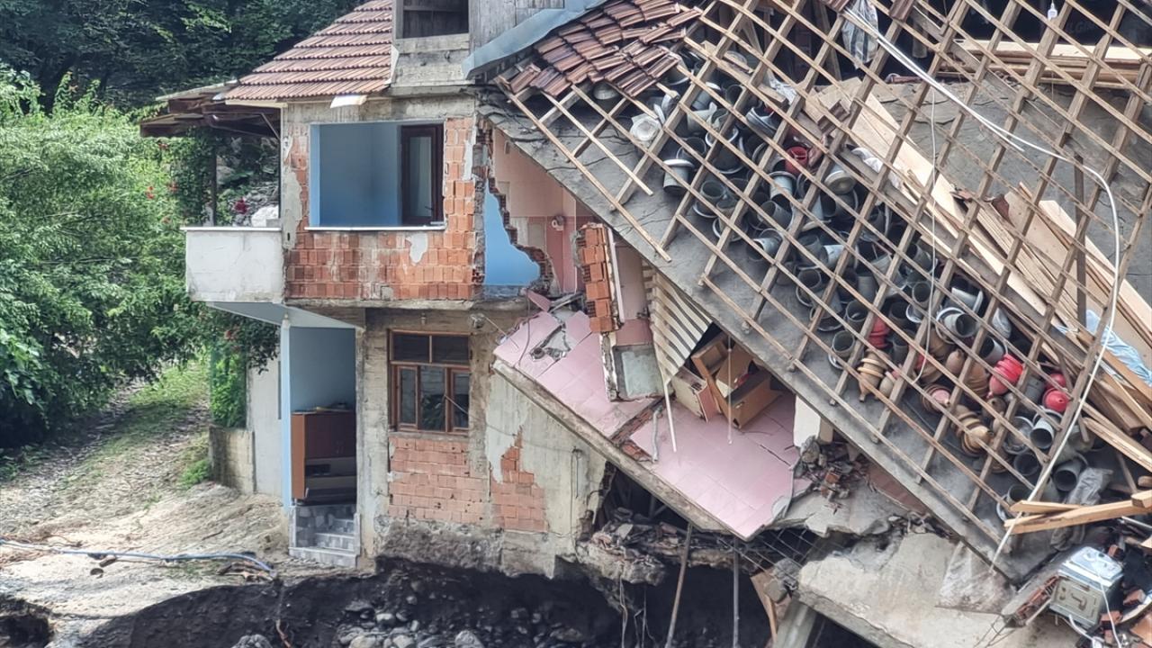 Öte yandan taşkın ve sel riskinin geçmesinin ardından bölgeye sevk edilen ekiplerin, evin enkazını kaldırma çalışmaları sürüyor.