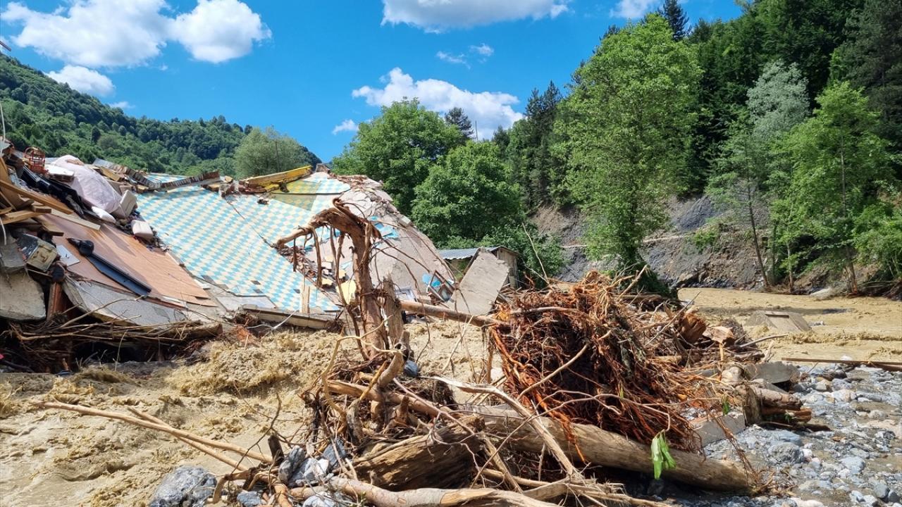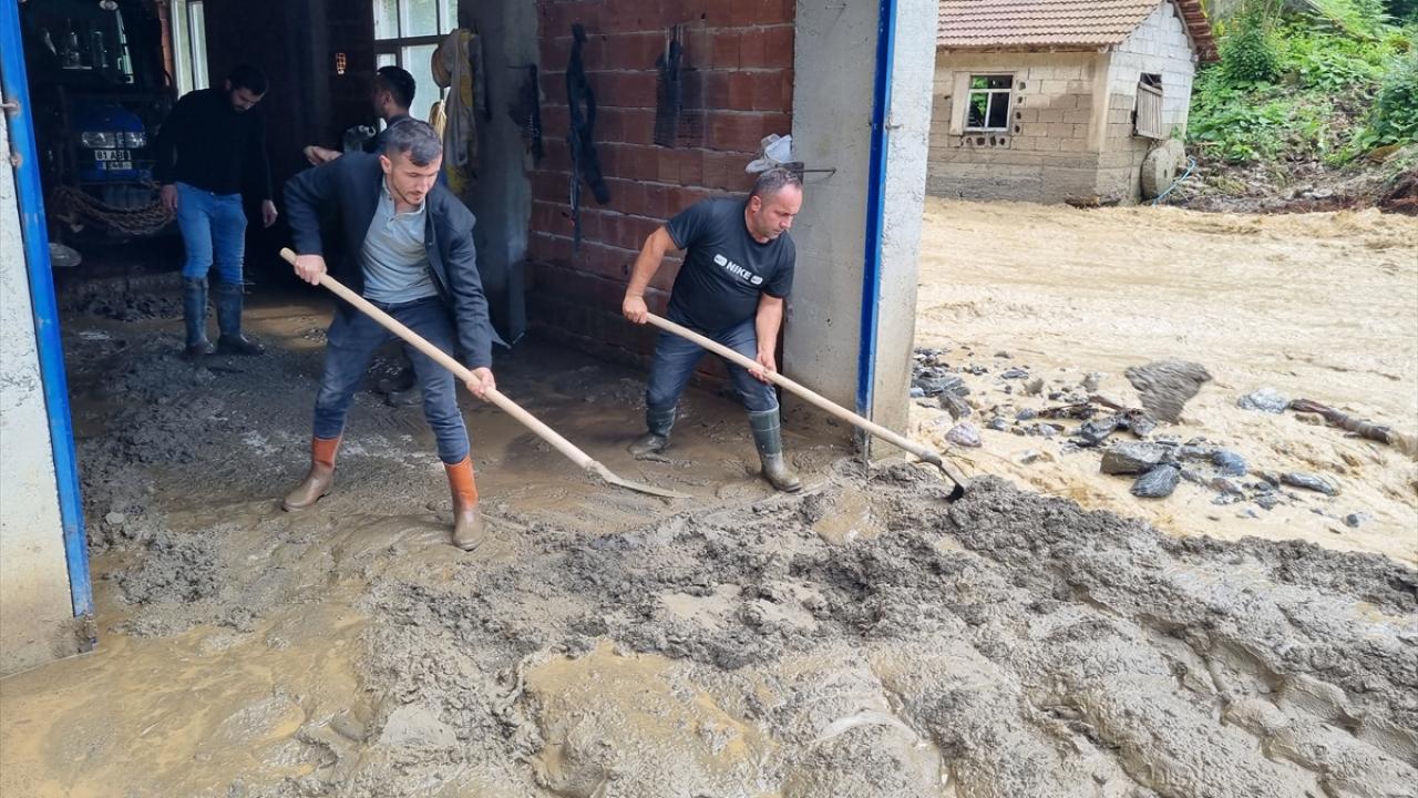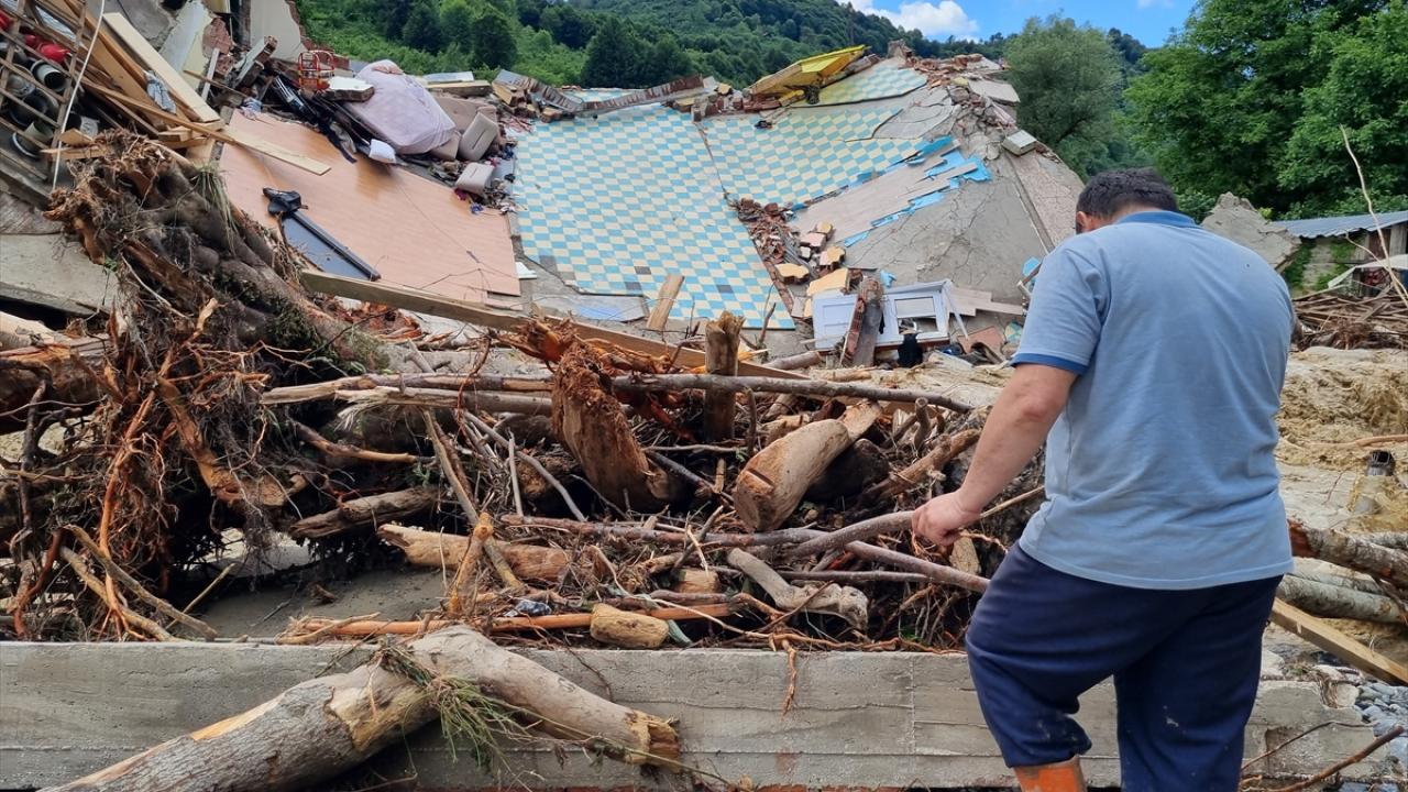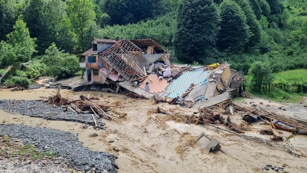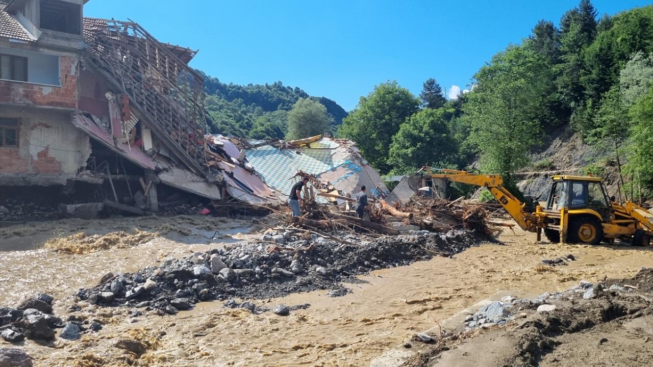 Öte yandan taşkın ve sel riskinin geçmesinin ardından bölgeye sevk edilen ekiplerin, evin enkazını kaldırma çalışmaları sürüyor.