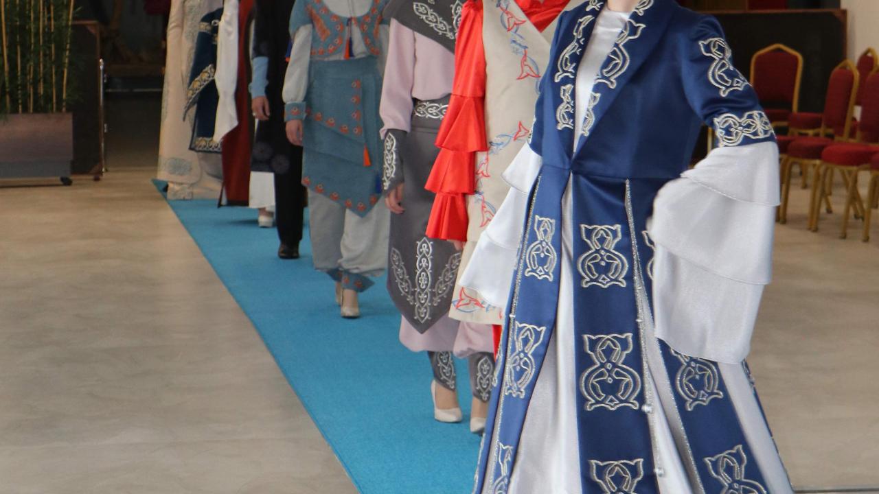 Kadın ve erkek mankenler tarafından tanıtılan kıyafetlere işlenen motiflerle ilgili bilgi veren Olgunlaşma Enstitüsü Müdürü Fatma Taşbaşı, amaçlarının motifleri günümüze kazandırmak olduğunu söyledi.
