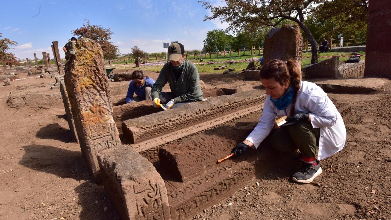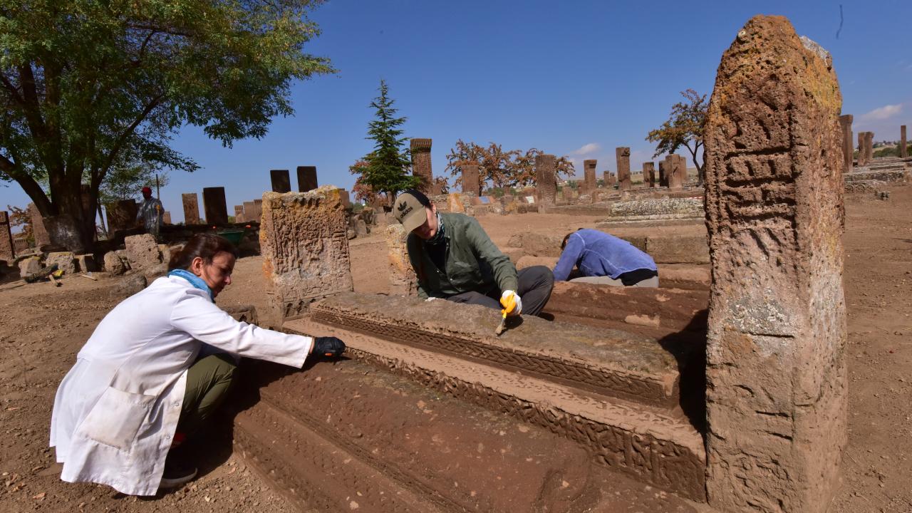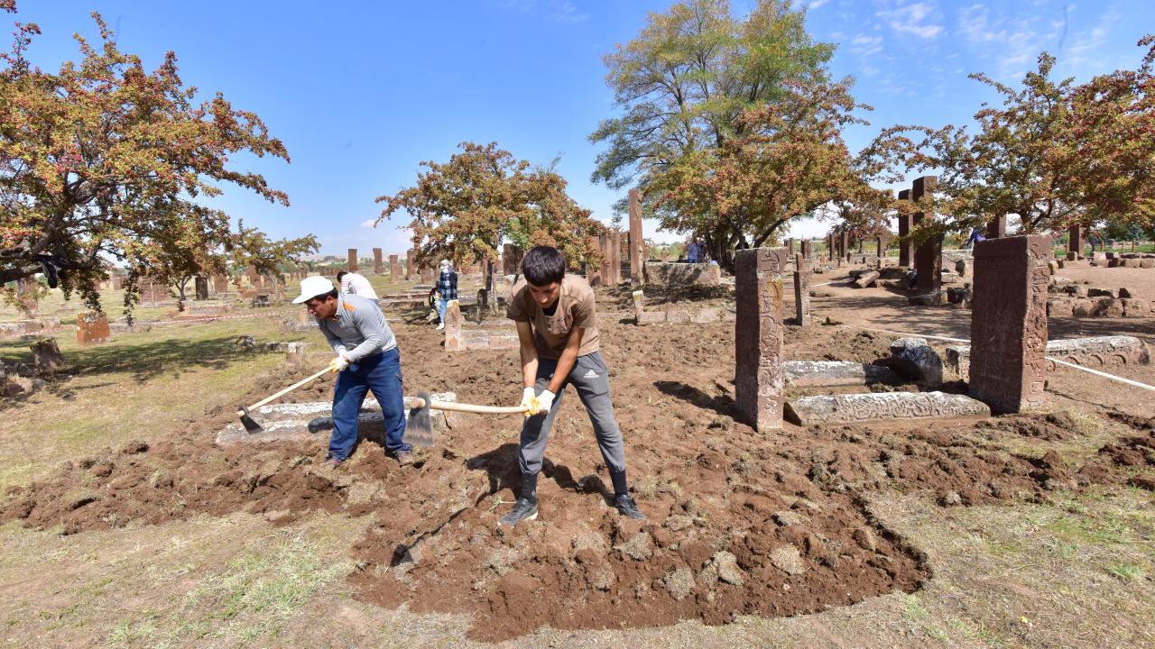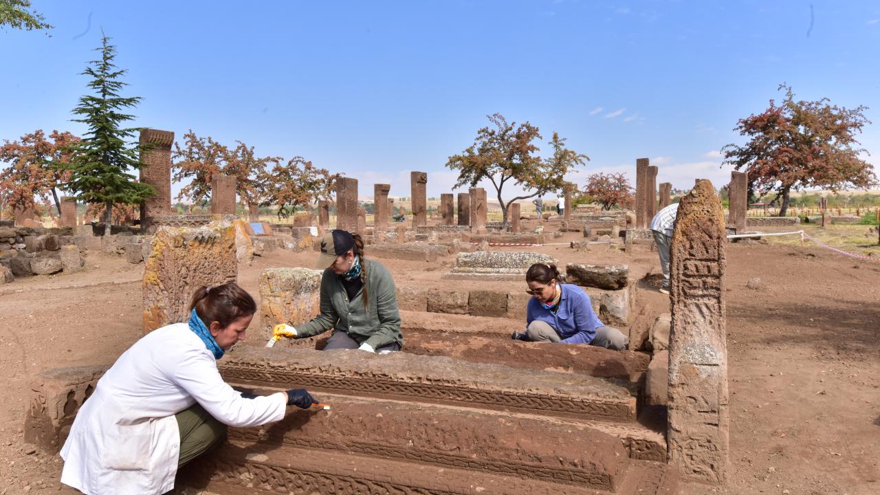 Van Yüzüncü Yıl Üniversitesi Sanat Tarihi Bölümü Dr. Öğr. Üyesi Mehmet Kulaz`ın bilimsel danışmanlığında yürütülen çalışmalarda hem yeni mezarlar ortaya çıkarılıyor hem de kırılan, tahrip olan mezar taşları restore ediliyor.