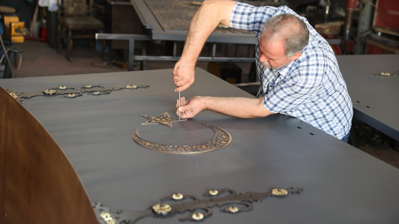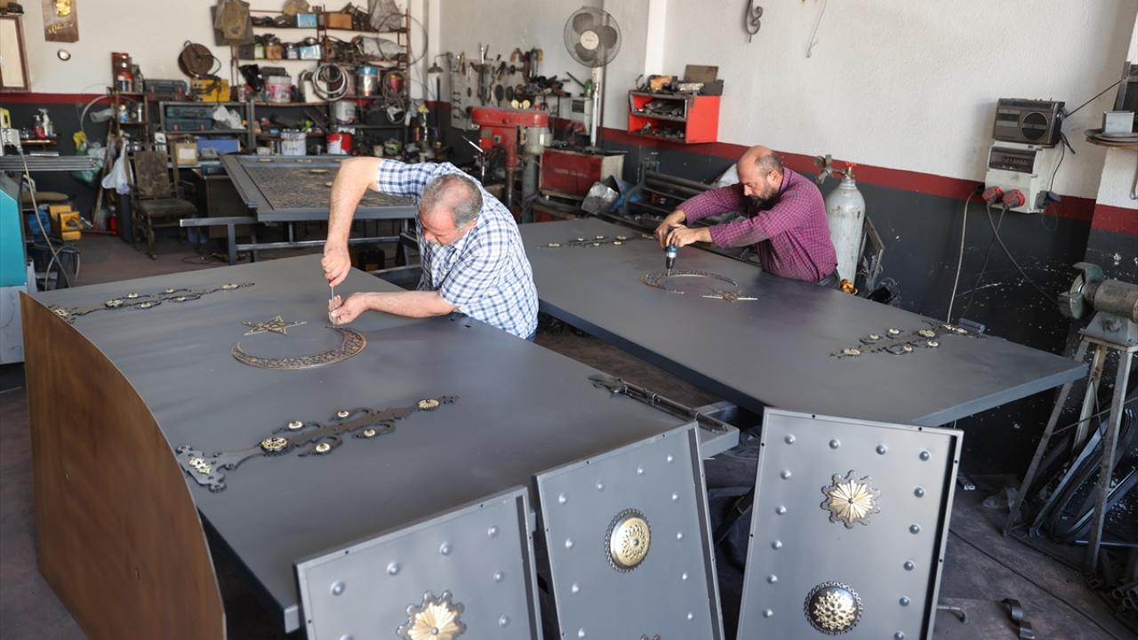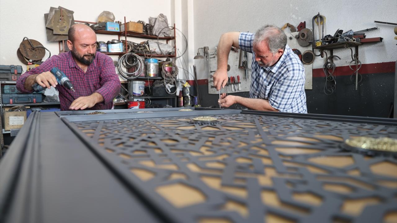 İkili, Nevşehir`de kısa süre önce ibadete açılan, aynı anda yaklaşık 10 bin kişinin ibadet edebildiği Nevşehir Külliyesi Hacı Süleyman Köybaşı Camii`nin avlu kapılarını yapmak için Nevşehir Sanayi Sitesi`ndeki atölyede mesai harcıyor.