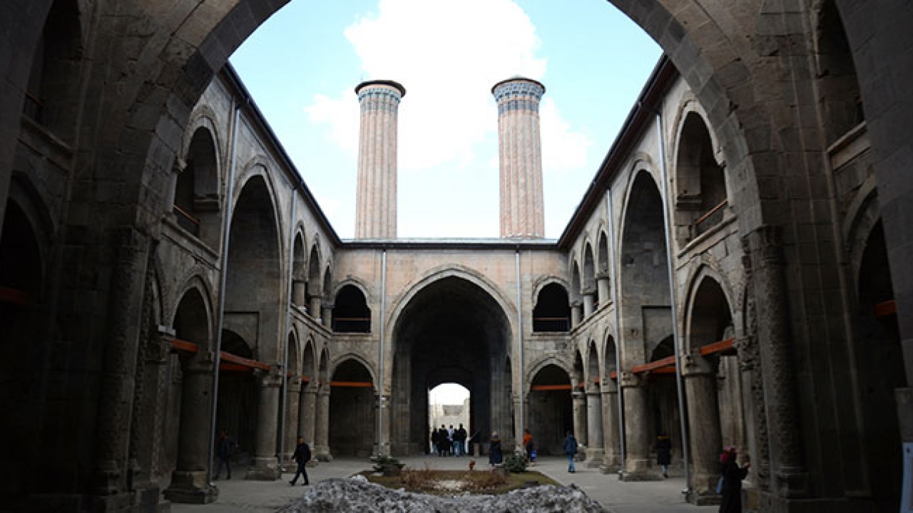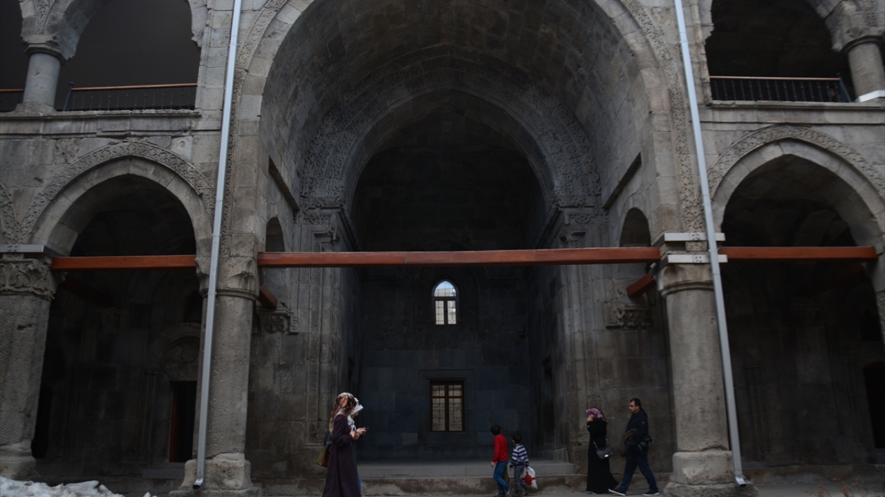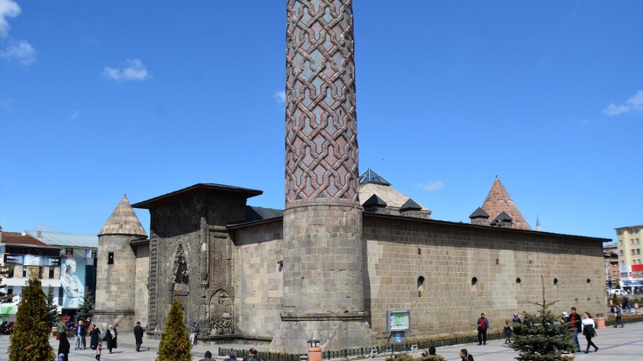 Şehrin simgelerinden ve Selçuklu mimarisinin eşsiz örneklerinden Çifte Minareli ve Yakutiye Medreseleri hafta sonu ziyaretçi akınına uğradı.