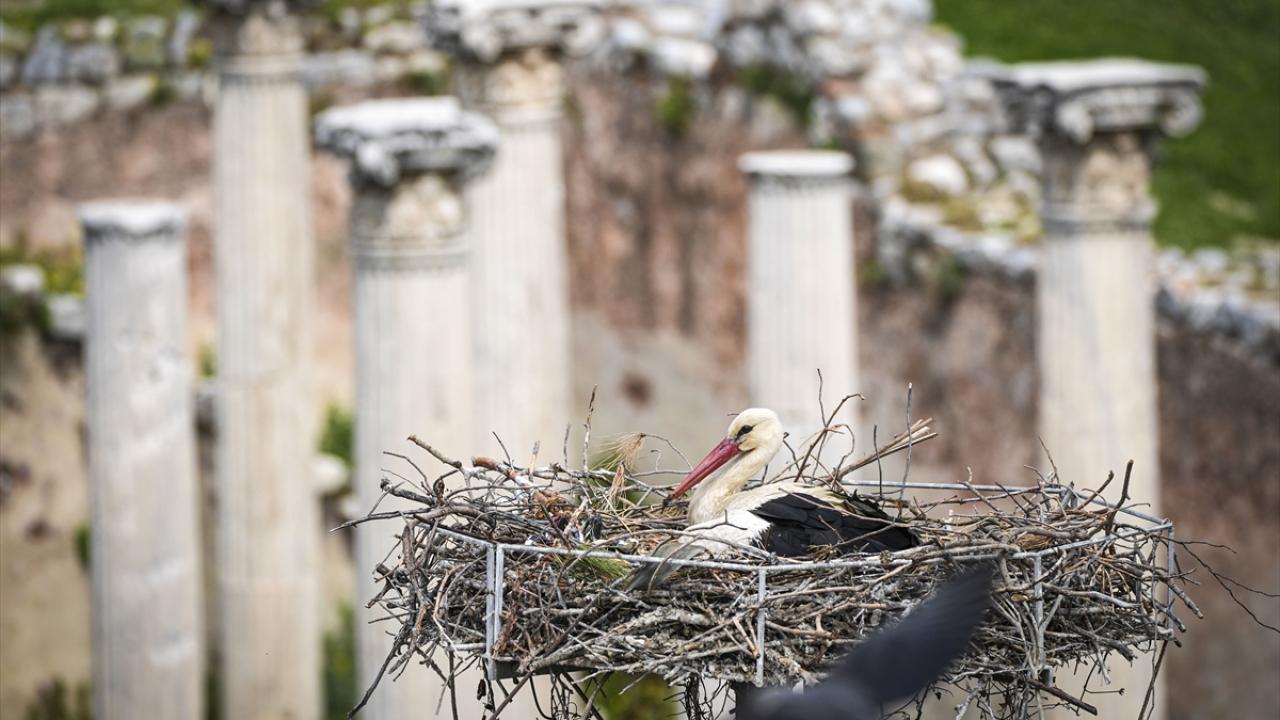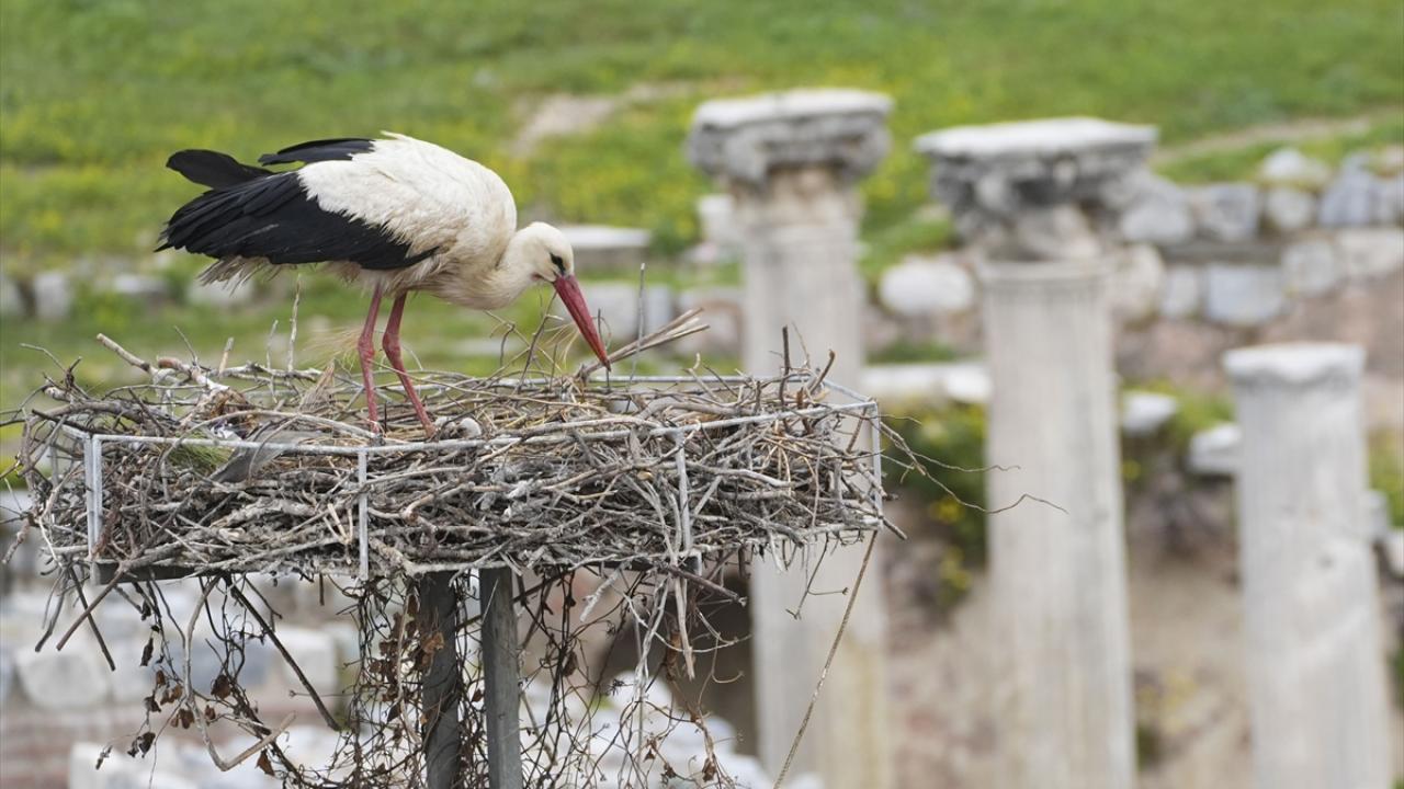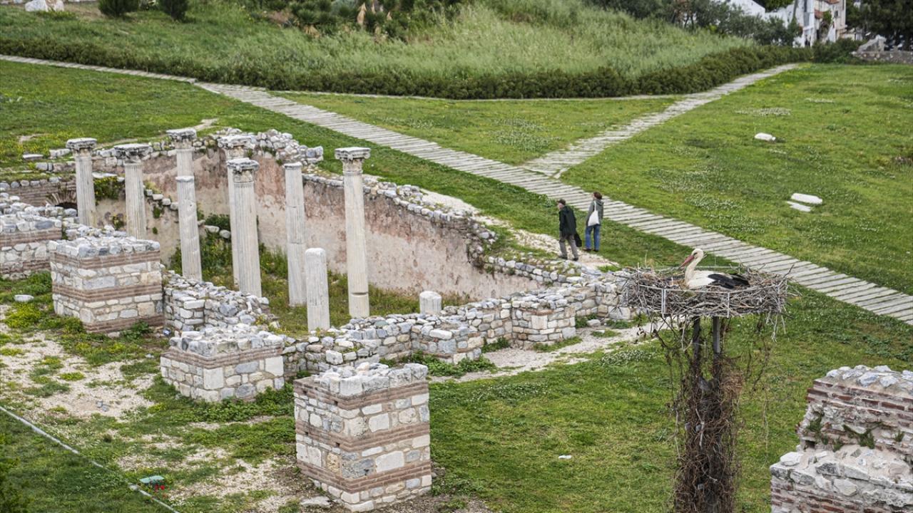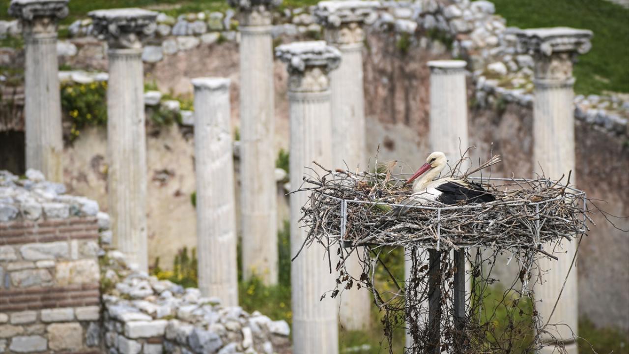 Selçuk'un tarihi yapılarını mesken tutan leylekler
