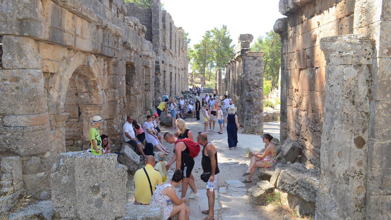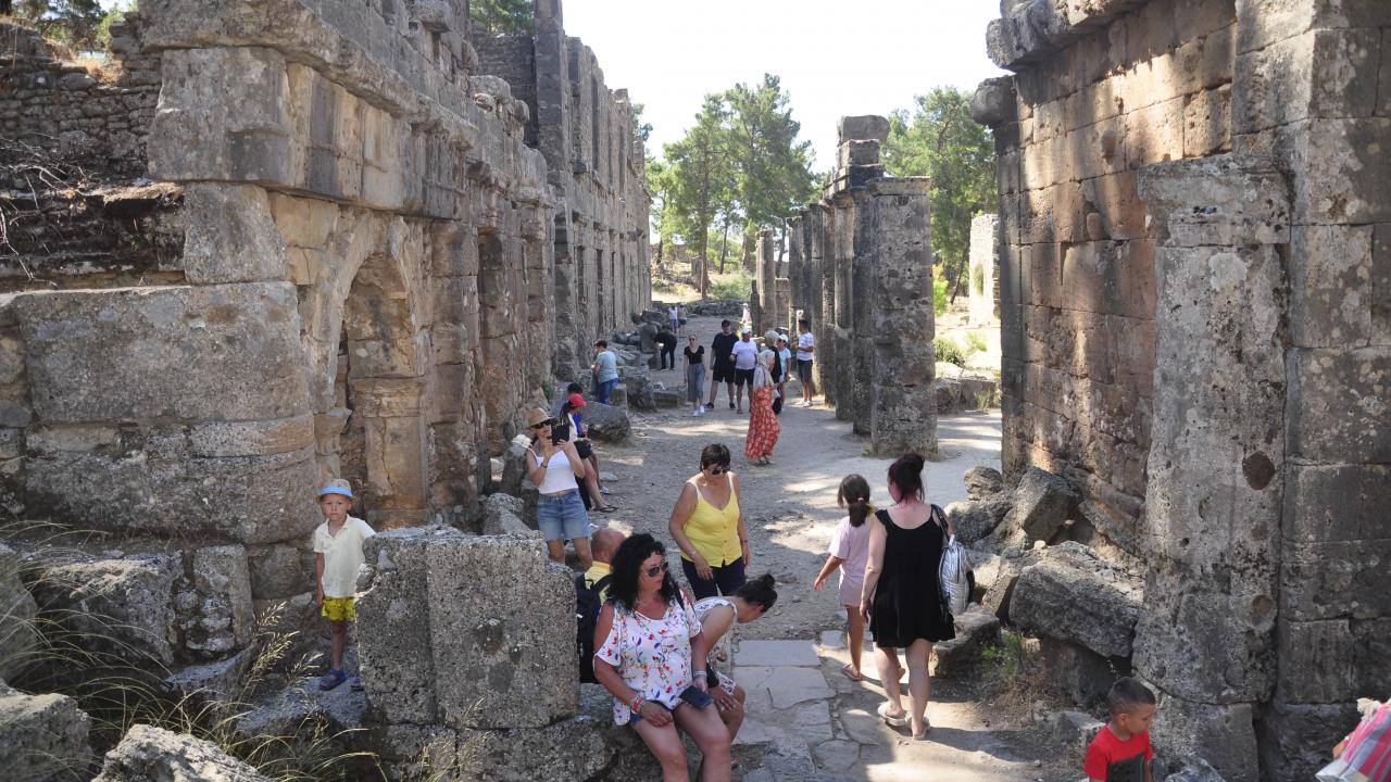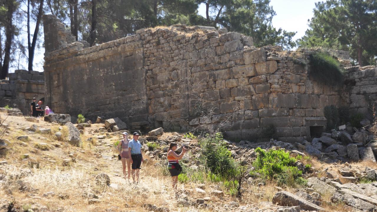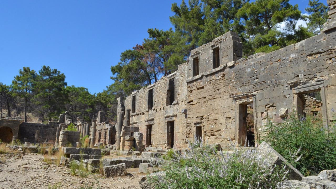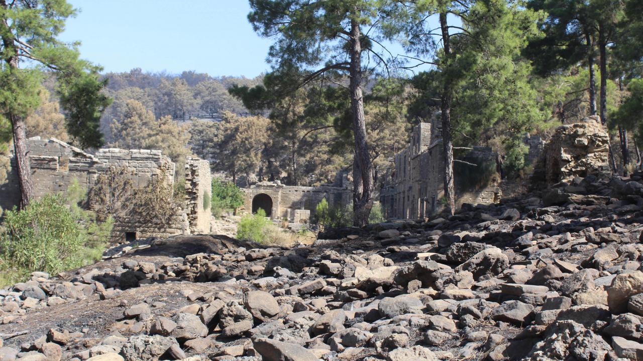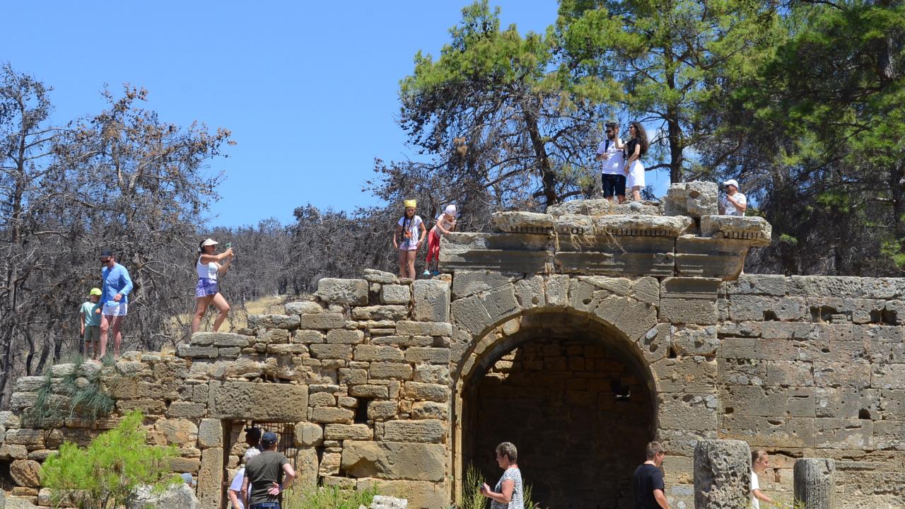 Tarihi antik kentin içindeki hamam, sarnıç, agora ve tapınak ise alevler nedeniyle tamamen siyaha büründü. Kent içinde yer alan ve çevresi tel ile kapatılan sarnıcın olduğu alan da zarar gördü.