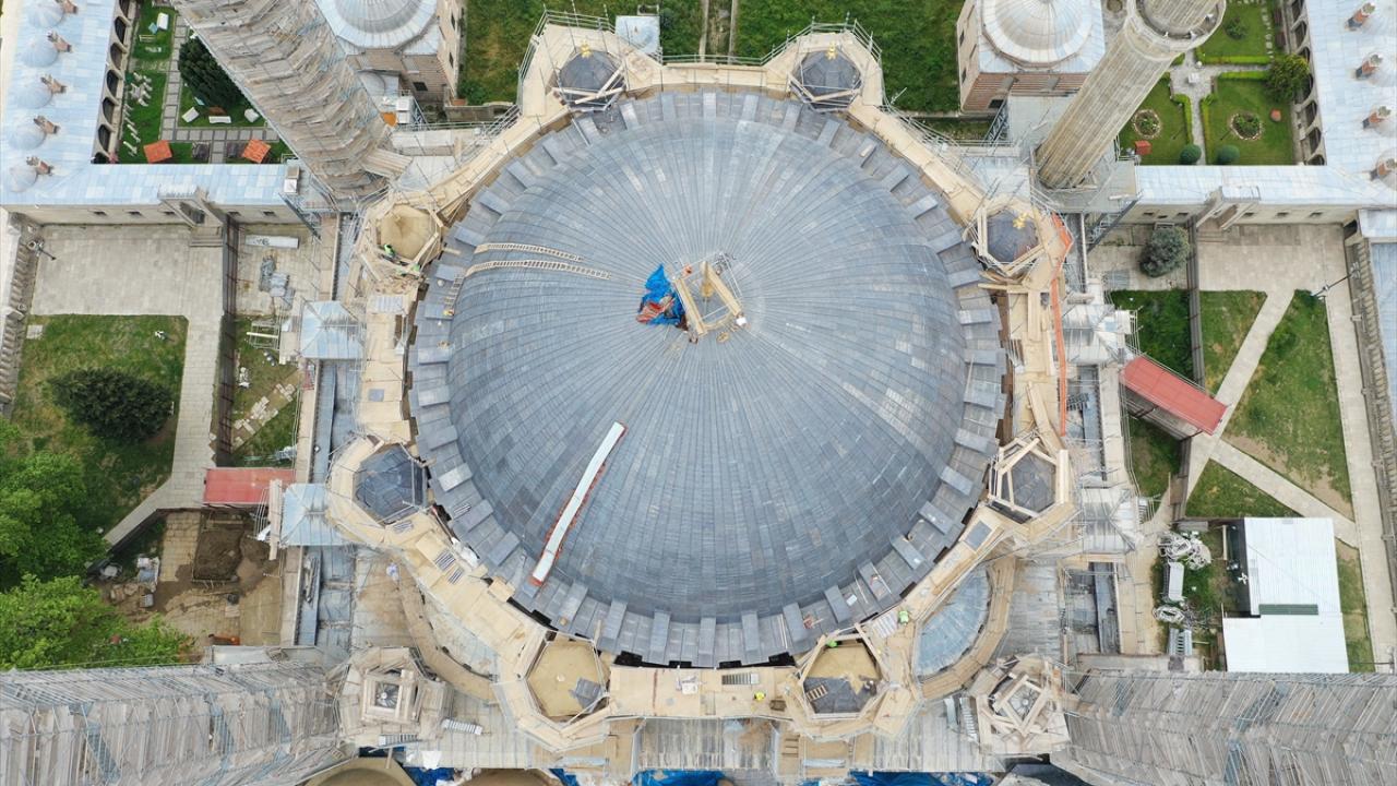 Kubbenin güçlendirilmesinin ardından kurşun kaplamaları sökülerek yenileriyle değiştirildi.
