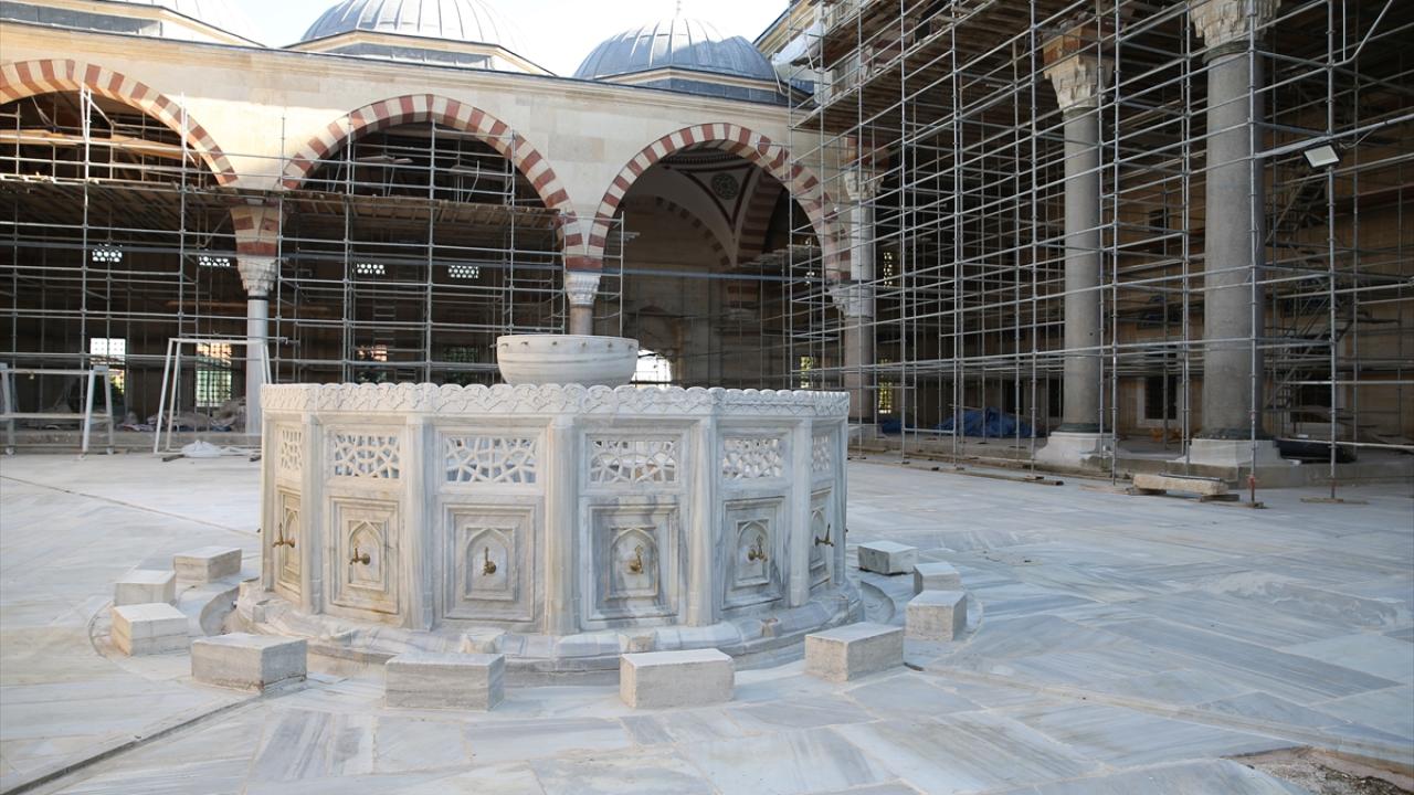 Caminin her noktasının hassasiyetle ele alındığını ve geçen sürede önemli çalışmalar yapıldığını belirten Saraç, "Camimizin dış cephe imalatları, kurşun onarımları, taş onarımları, taş temizlikleri, güçlendirme imalatları, içlik ve dışlık yenileme çalışmalarını tamamladık. En hasarlı bölümlerimizden olan 4 minarenin onarımını tamamladık ve iskelelerimizi söktük. Avluda bulunan şadırvanımızın onarımını bitirdik. Yine caminin kündekari kapı ve pencere kepenklerinin konservasyon ve restorasyon çalışmalarını tamamladık." dedi.