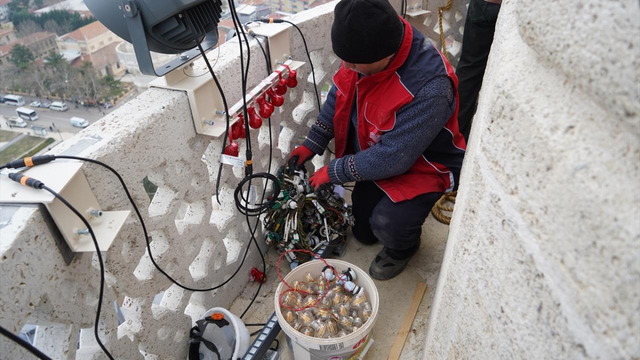 Genel Müdürlüğün İstanbul`daki mahya atölyesinde hazırlanarak Edirne`ye getirilen "Hoş geldin on bir ayın sultanı" yazılı mahya, ustalarca caminin minareleri arasına asılmaya başlandı.