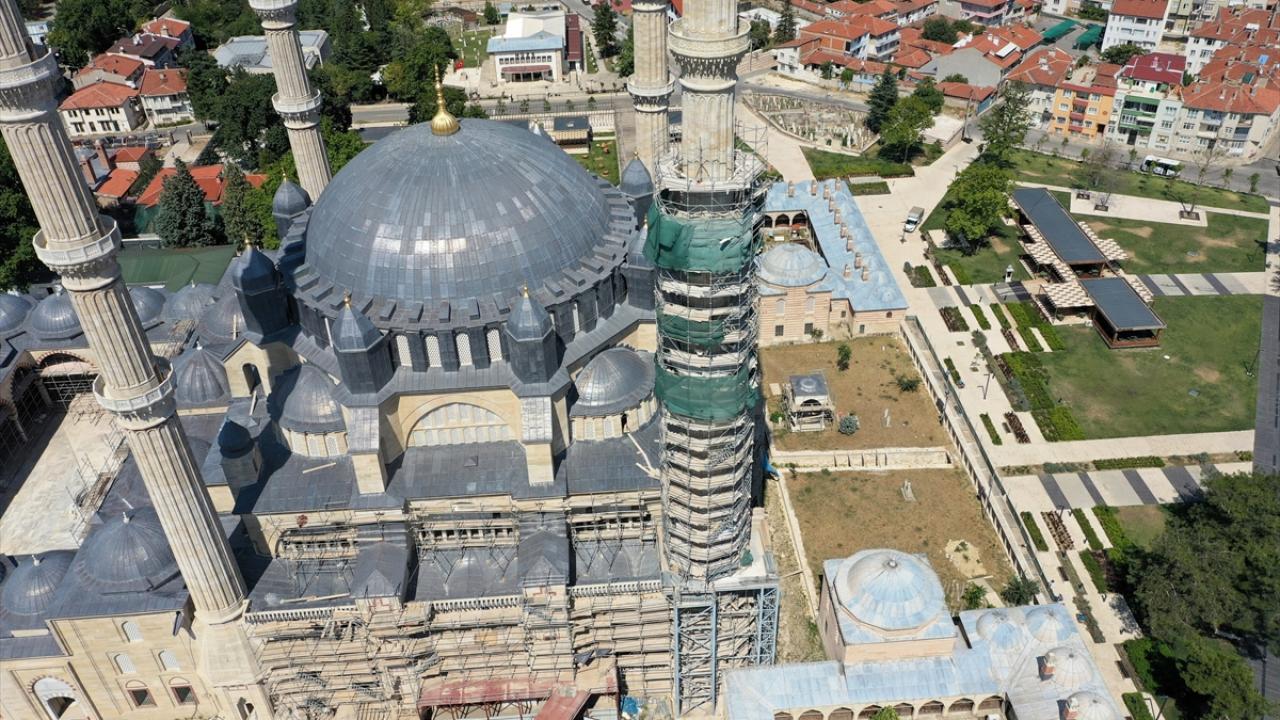 Mimar Sinan'ın "ustalık eseri" Edirne'deki Selimiye Camii'nde devam eden kapsamlı restorasyon çerçevesinde onarımdan geçen minarelerdeki işlemler bitti.
