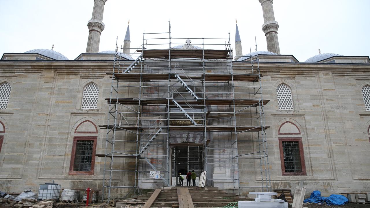 Mimar Sinan'ın "ustalık eseri" Selimiye Camisi'nin gelecek yıllara güvenle taşınması amacıyla başlatılan restorasyonda dış cephe çalışmaları tamamlanırken, ekipler kalem işi süsleme çalışmalarına ve bahçe düzenlemesine yoğunlaştı.