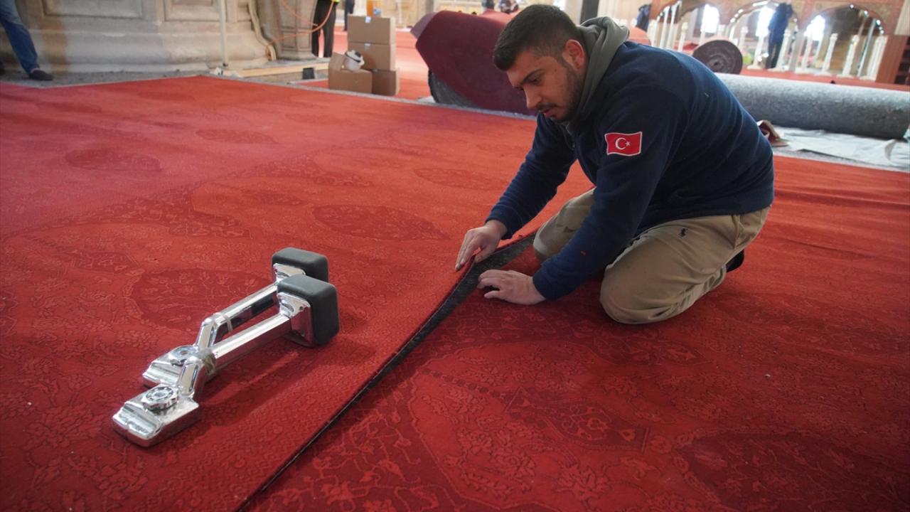 Ön seki bölümünde seccade düzeni tercih edilirken, ana harimde orijinal desen, ton sür ton tekniğiyle kentin uluslararası kabul görmüş rengi olan “Edirne kırmızısı” kullanılarak dokundu.