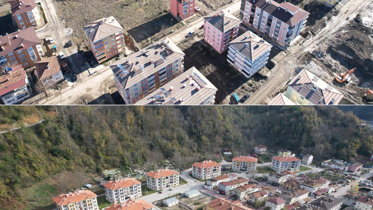 Yaklaşık 2 yıl önce havadan çekilen görüntülerde ilçenin şantiyeye döndüğü görülürken, yapılan çalışmalarla Bozkurt modern bir kent görüntüsüne sahip oldu. Dron görüntüleri, ilçedeki değişimi gözler önüne serdi .