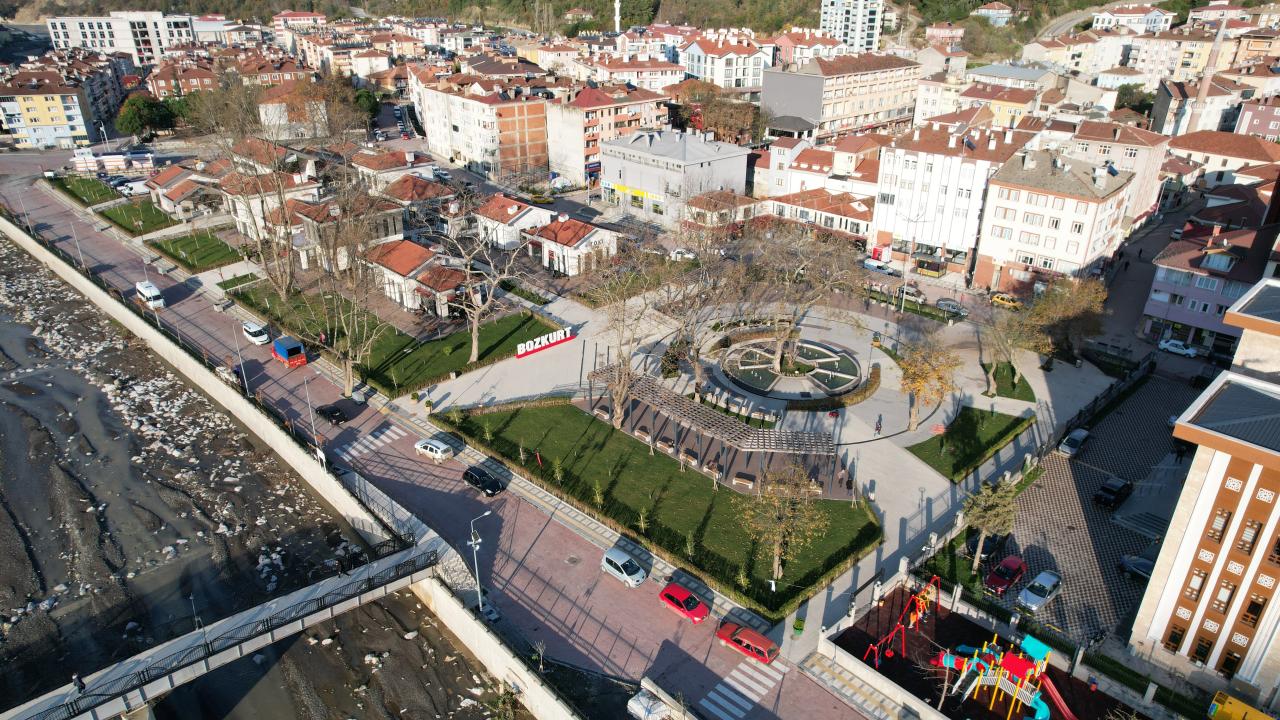 "İlçe meydanımız felakette seli en fazla, en şiddetli yaşayan bölgelerimizden birisiydi. Sel sonrası Çevre, Şehircilik ve İklim Değişikliği Bakanlığımız burayı tekrar projelendirerek eski meydanımızı tekrar çok daha modern bir hale getirmiş oldu. Bu meydanda daha önce sosyal alanlar, dükkanlar, kafeler, pazar yeri vardı. İlçemizin eski adının Pazaryeri olmasından dolayı pazar bizim için çok önemliydi. Çok kalabalık pazarımız olurdu. Burası, kotu yükseltilip tekrar projelendirilerek 13 dükkan yapıldı, biri millet kıraathanesi oldu. Yeni pazar yeri, yeni yüzüyle çok daha modern bir şekilde insanlarımızın istifade edeceği bir noktaya getirildi. Dükkanların 10`u aktif şekilde faaliyete geçti, diğerleri de inşallah yeni kiracılarıyla birlikte aktif hale gelecek. İnsanlarımız da burayı tekrar eski günlerdeki gibi aktif bir şekilde kullanmaya başladı. İnsanların sosyal olarak vakit geçirdiği bir meydanı tekrar ilçemize kavuşturmuş olduk."