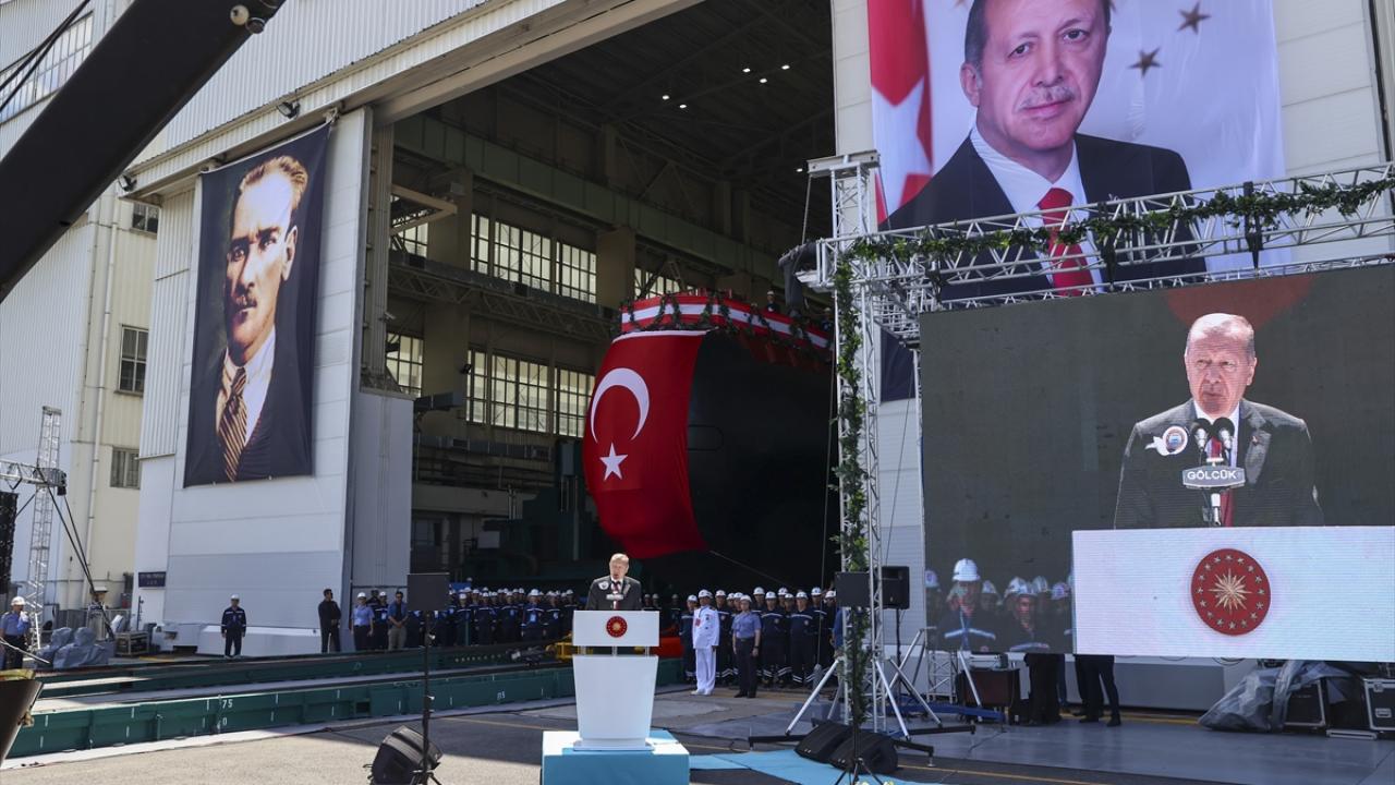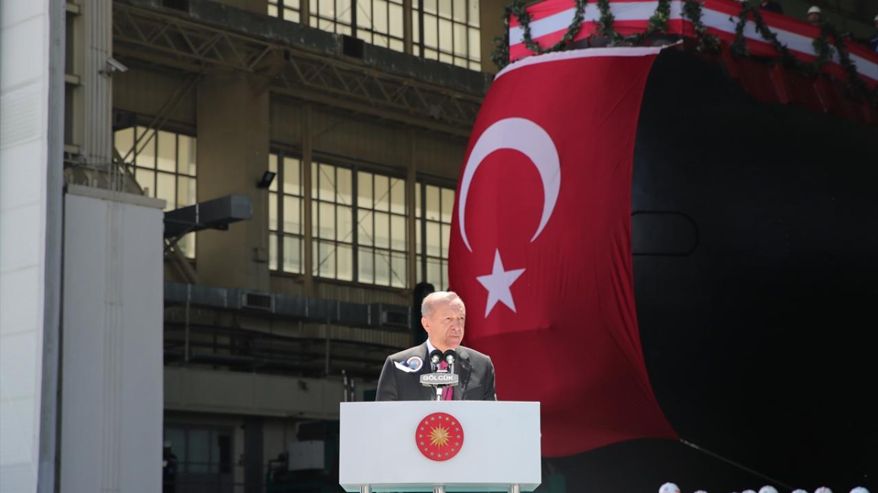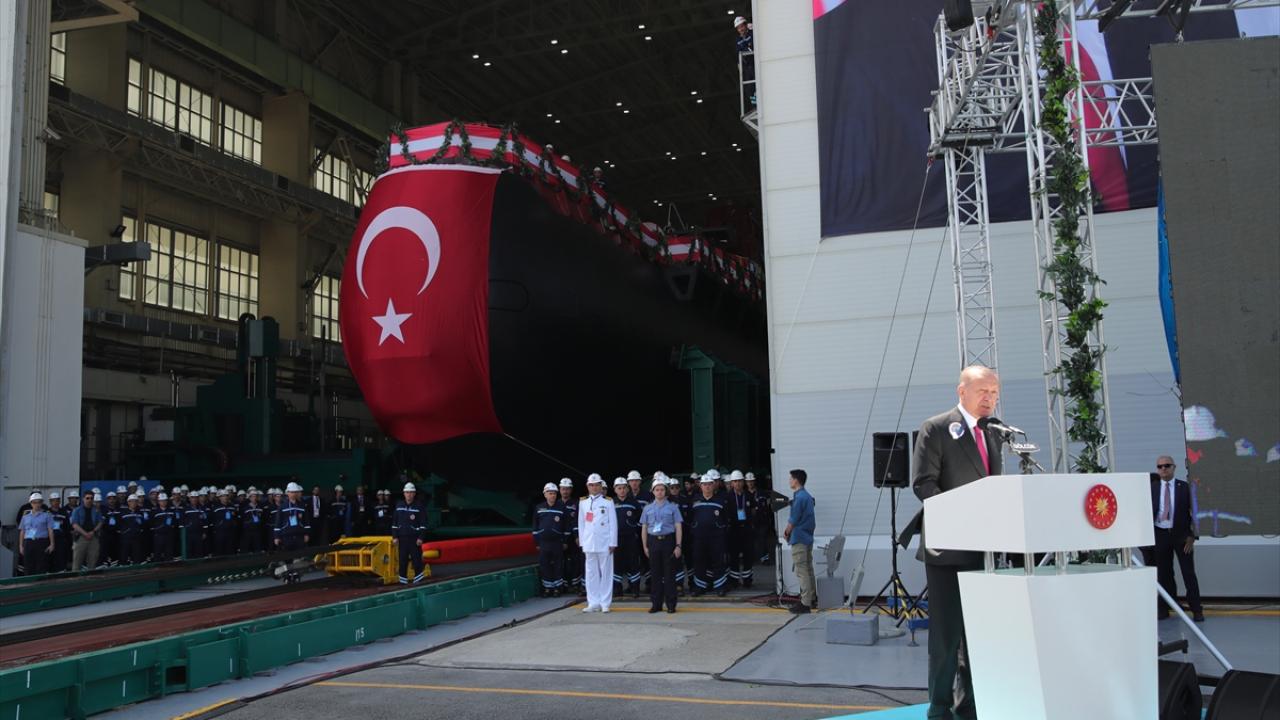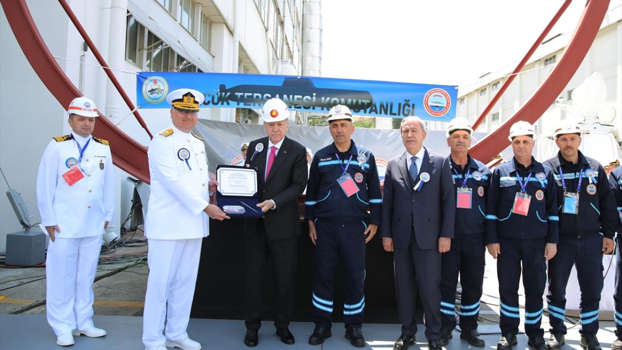 Cumhurbaşkanı Recep Tayyip Erdoğan, Gölcük Tersane Komutanlığında Hızırreis Denizaltısı Havuza Çekme ve Selmanreis Denizaltısı İlk Kaynak Töreni'ne katıldı.