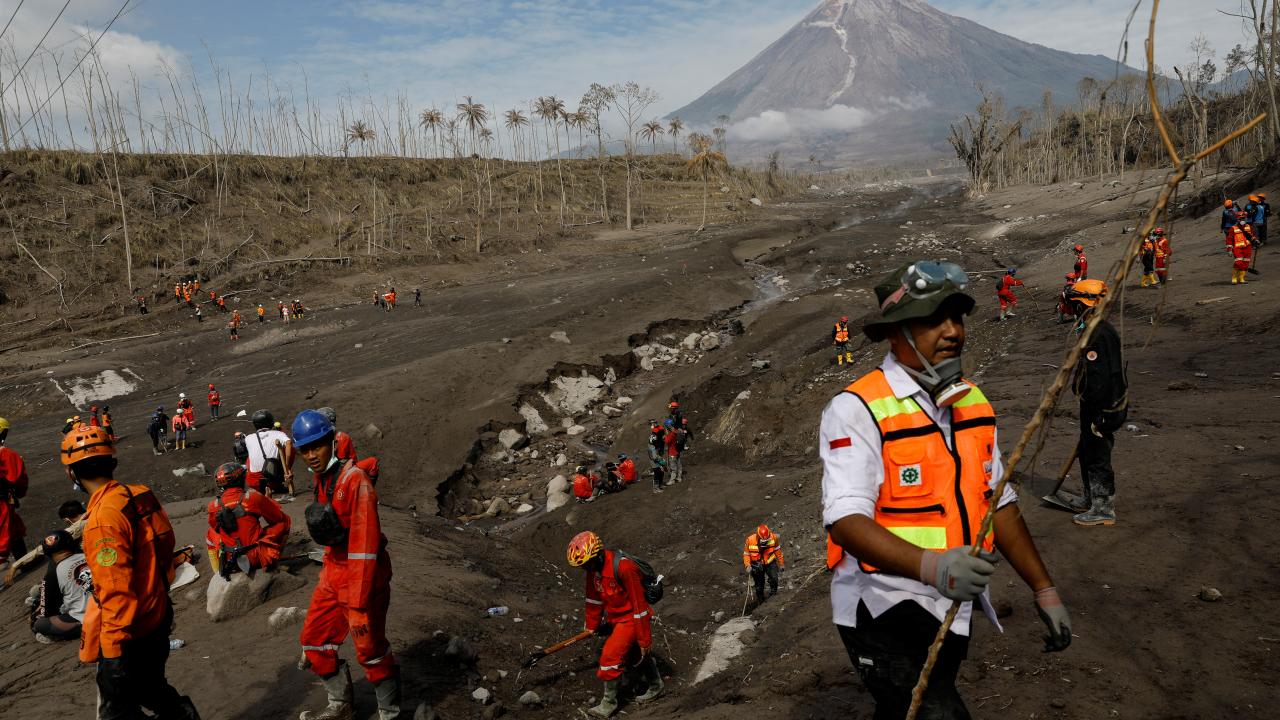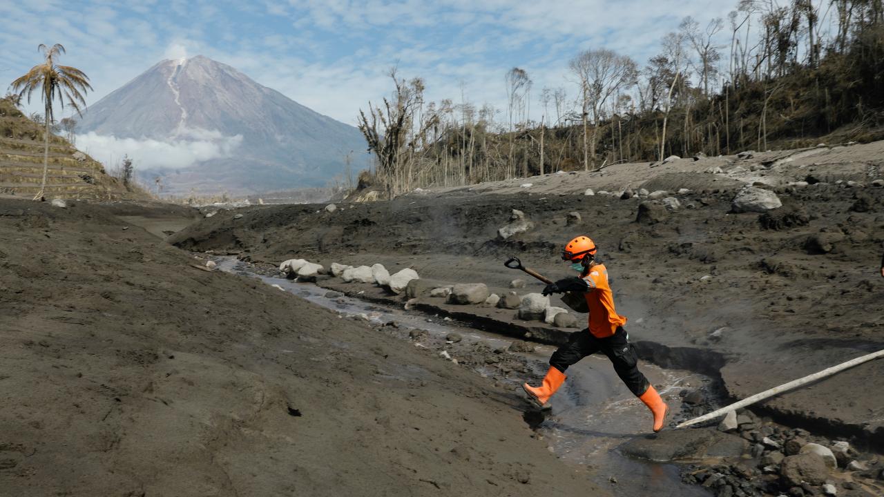 Endonezya'nın Doğu Cava eyaletinde bulunan Semeru Yanardağı'nda cumartesi günü meydana gelen patlamanın ardından ekipler bölgede çalışmalarını sürdürüyor.