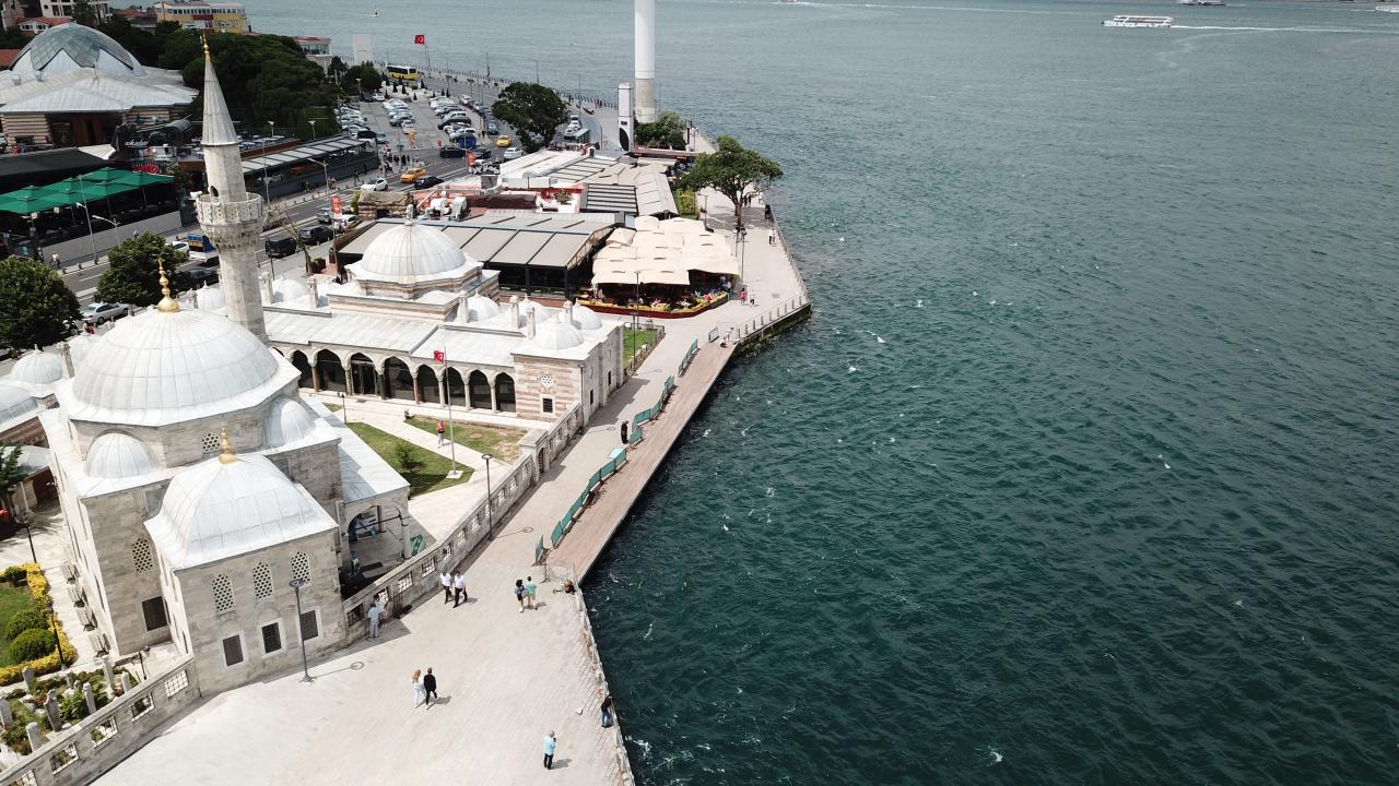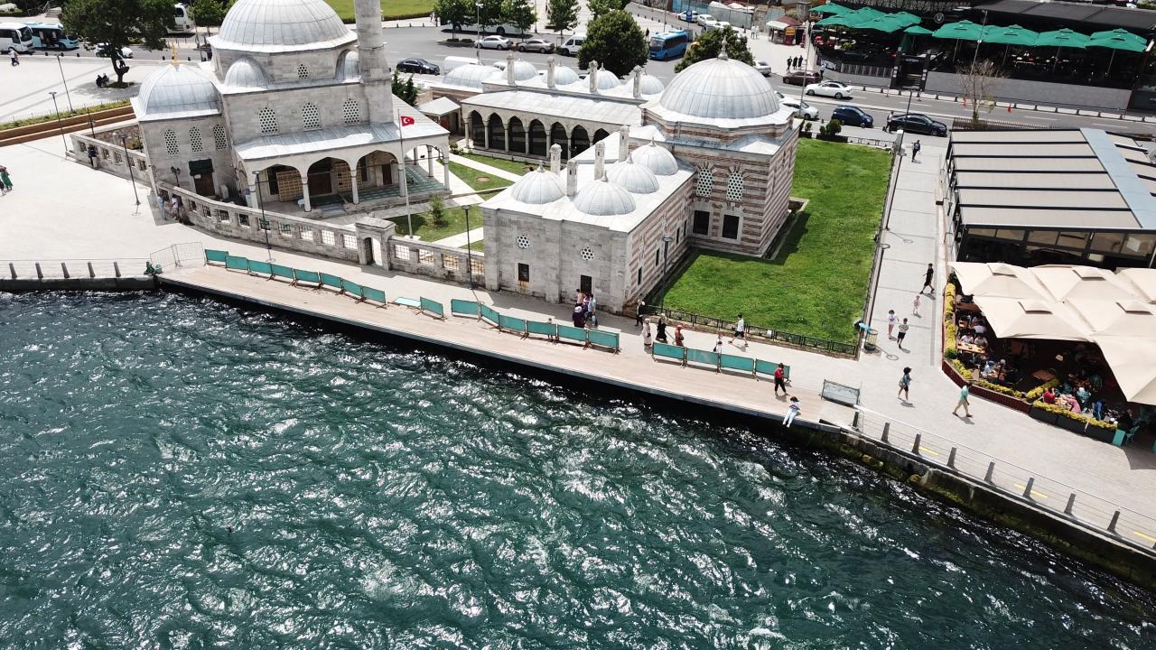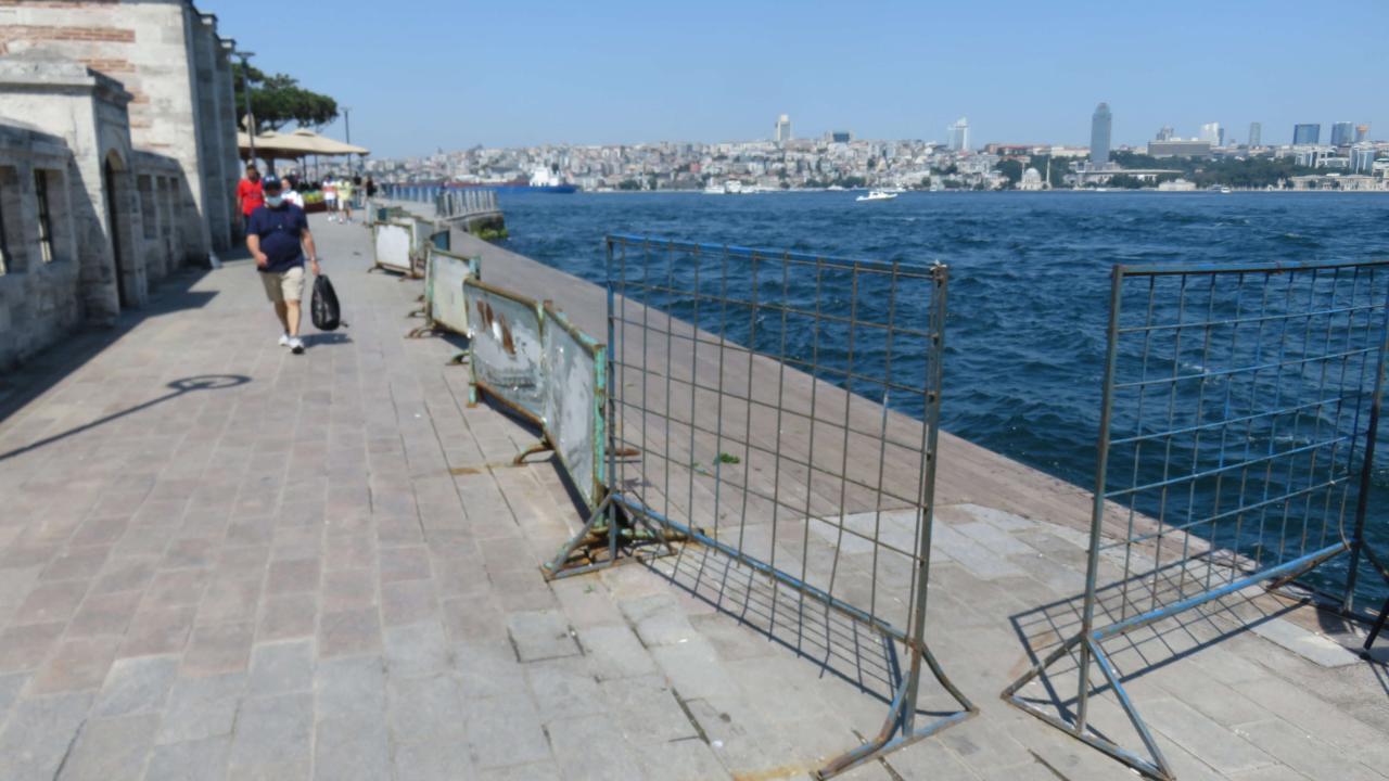 İstanbul'un yalı camilerinden Üsküdar'daki Şemsi Paşa Camii'nin deniz kısmına yolu genişletmek için yapılan platformun bir bölümü zarar görünce bariyerler ile kapatıldı.