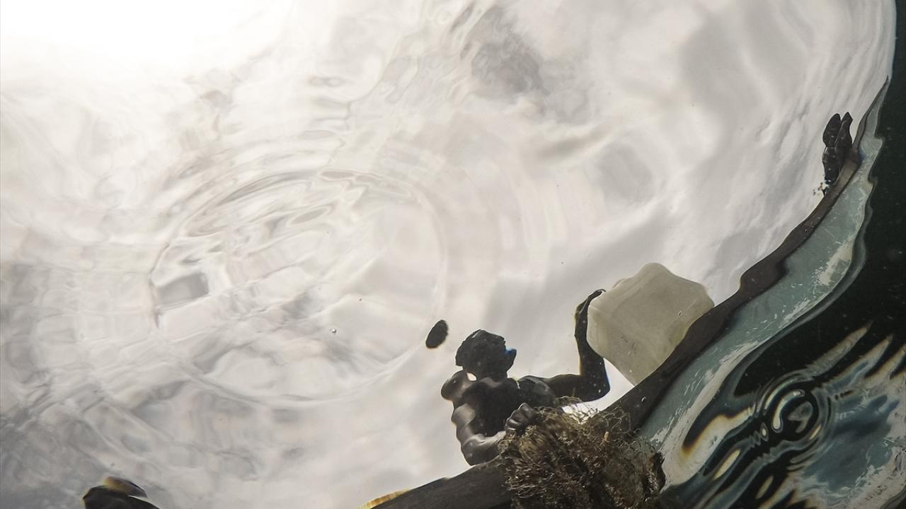 Dalgıçlar, okyanus dibindeki ağları kıyıya çıkartarak su altı temizliği yapıyor.
