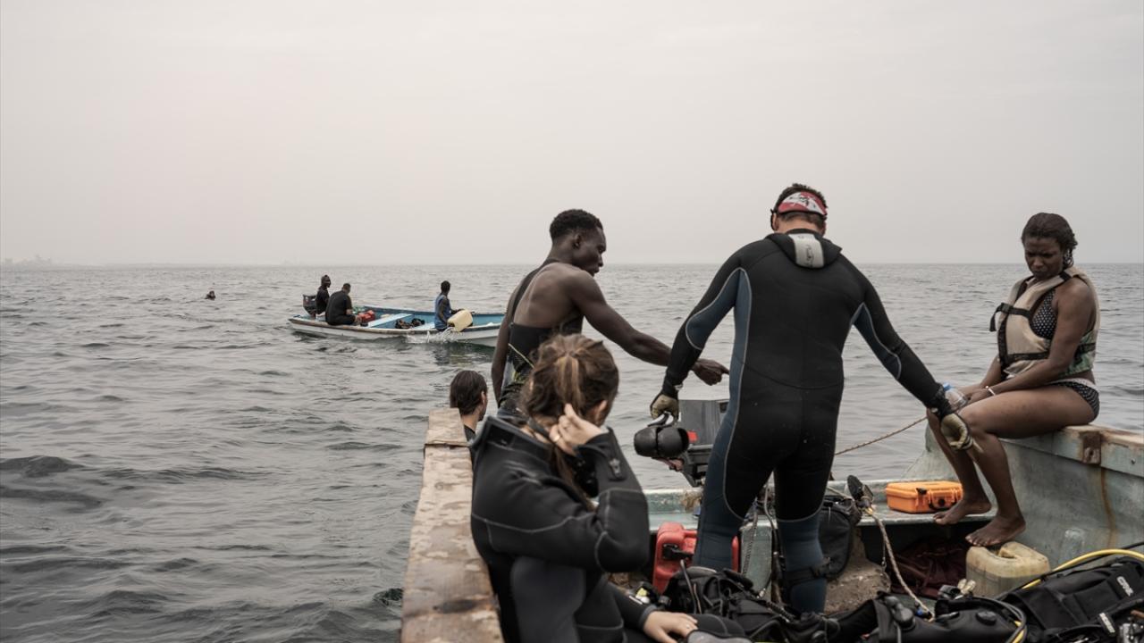 Senegal'in Dakar kentindeki Oceanium adlı sivil toplum kuruluşunun dalgıçları, okyanusta kirliliğe neden olan ve ekosistemi olumsuz etkileyen ve "hayalet ağ" olarak isimlendirilen balıkçı ağlarını temizliyor.