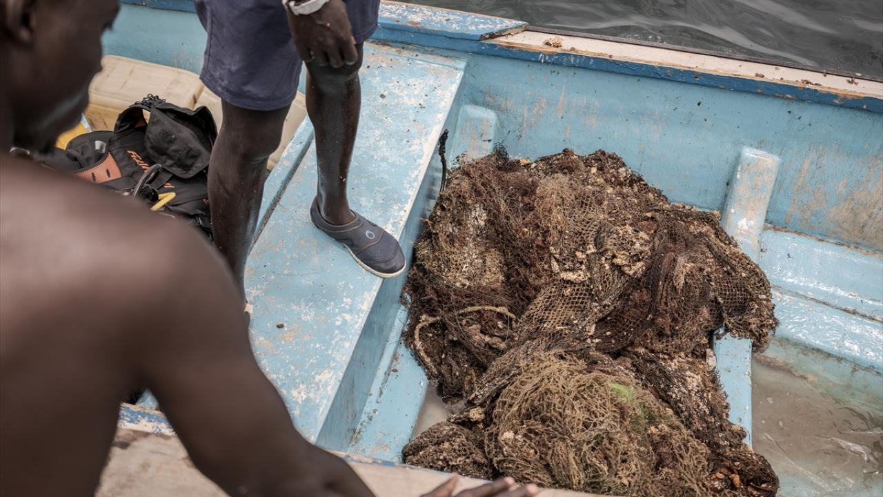 Atlas okyanusunda kıyısı bulunan Senegal`de, su altına bırakılan "hayalet ağlar" okyanustaki canlılar için büyük bir tehdit oluştururken bu ağların zamanla parçalanarak mikro plastiğe dönüşmesi de kirliliğe neden oluyor.